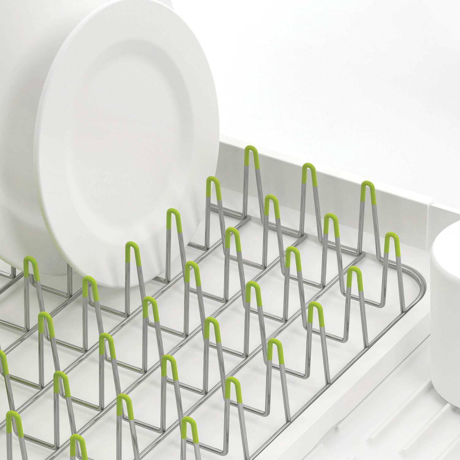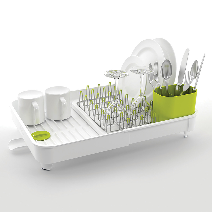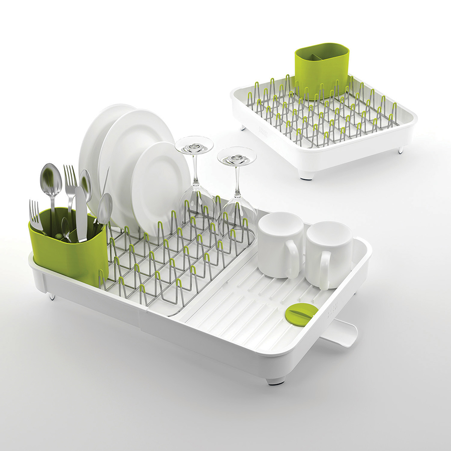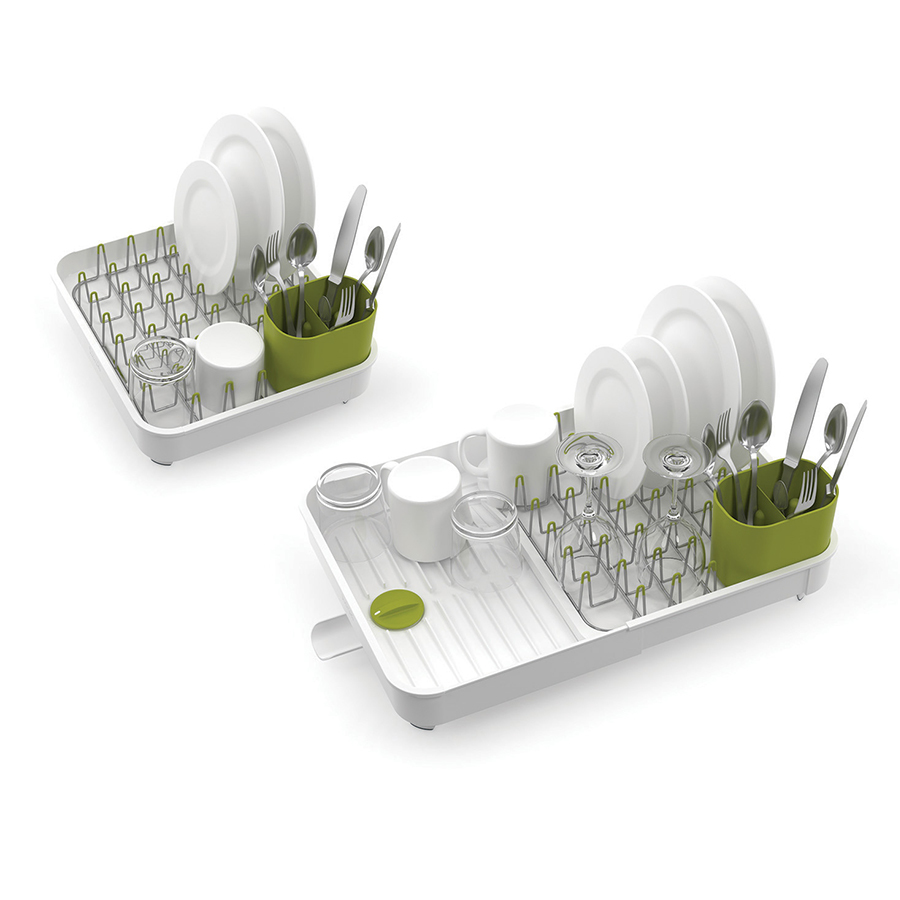Практичная сушилка легко раздвигается под то или иное количество посуды, при необходимости она может изменять размер почти вдвое.