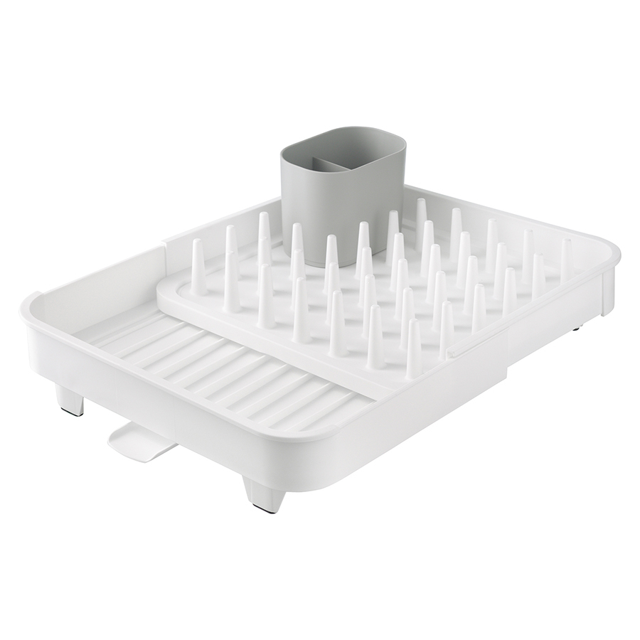 Пластиковая сушилка Jarl поможет компактно разместить посуду и столовые приборы после мытья, заняв минимум места на столешнице. Благодаря практичному и устойчивому к износу материалу изделие легко очищается от загрязнений, не боится воздействия влаги и механических повреждений. Конструкция отличается лаконичным дизайном, что позволяет вписать ее в любой современный интерьер.