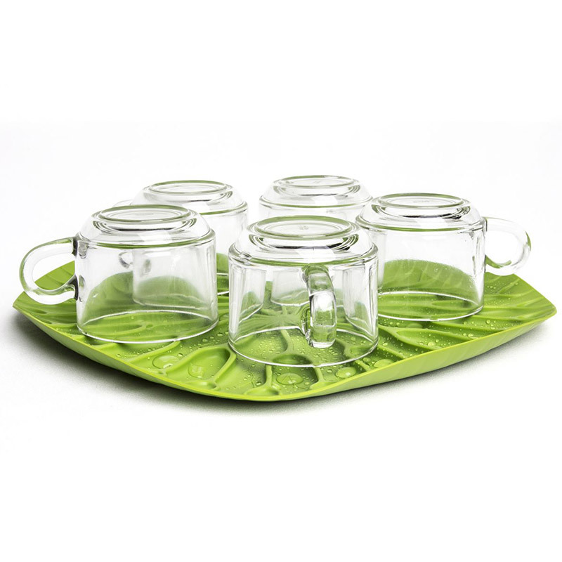 Как известно, лотосы растут в воде, а значит, великолепная сушилка для посуды в виде листка лотоса должна быть поближе к раковине. Поставьте ее на столешницу или в шкаф, чтобы вода со свежевымытых стаканов, чашек, тарелок или столовых приборов стекала вниз на силиконовые желобки. Плюс к этому такую красоту можно использовать в качестве сервировочного подноса для овощей и фруктов.