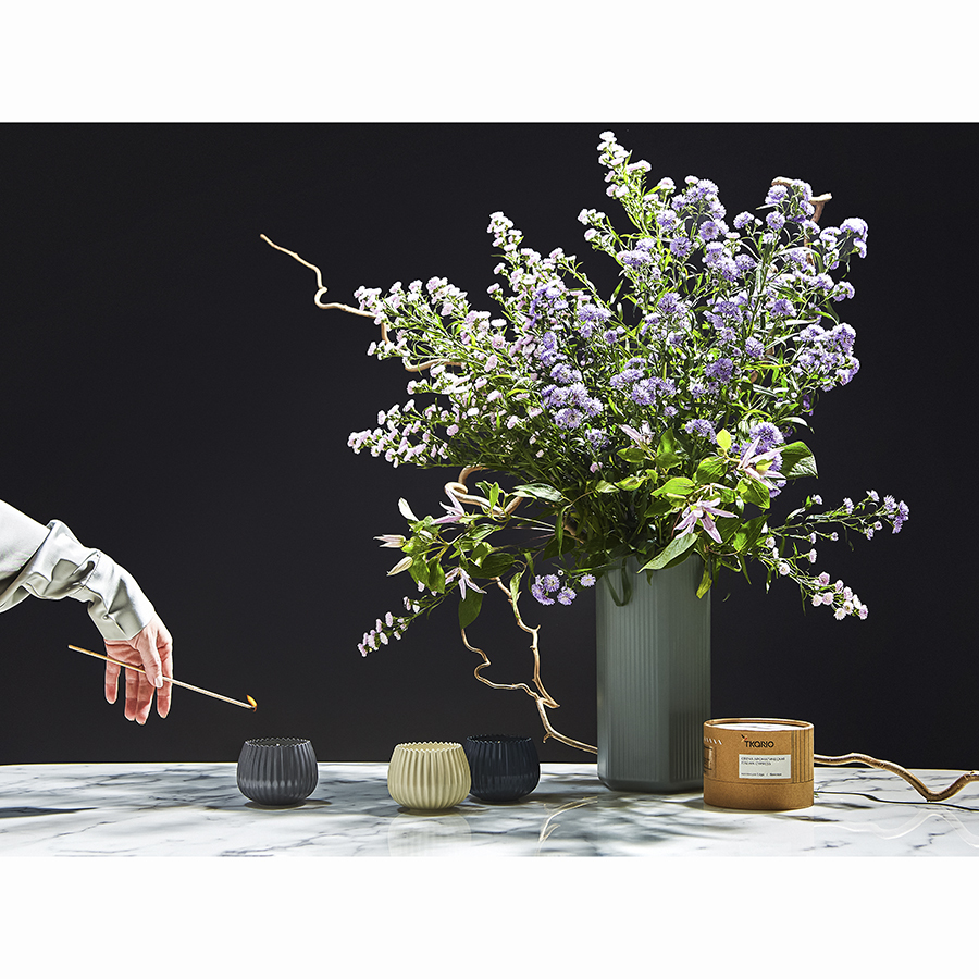 Свеча ароматическая Tkano Edge Green tea & Pear blossom серая 30ч