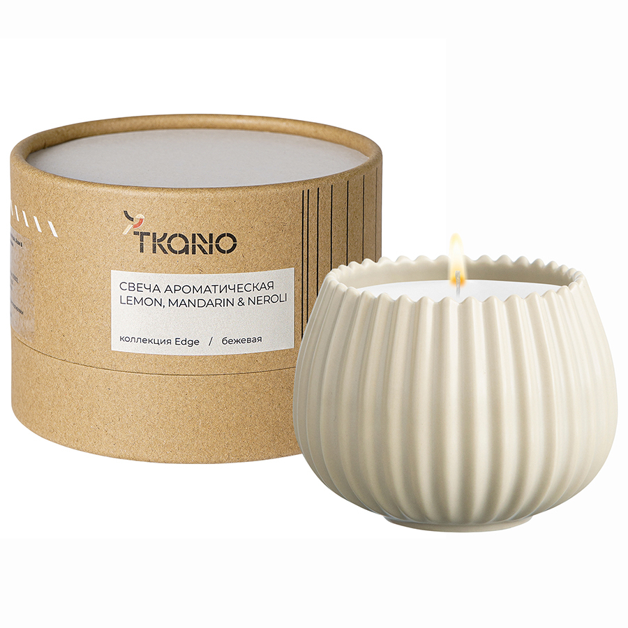 Свеча ароматическая Tkano Edge Lemon Mandarin & Neroli бежевая 30ч