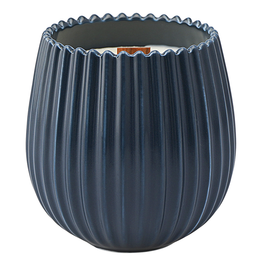 Свеча ароматическая с деревянным фитилем Green tea & Pear blossom синего цвета из коллекции Edge с дизайном, вдохновленным русскими традициями, отлично подойдет для домашнего декора и создания в интерьере уютной, расслабляющей атмосферы. Фактурные грани и округлая поверхность фарфорового стакана отсылают нас к образу купола – символу духовного подъема и стремления к совершенству. Экологичные материалы, такие как соевый, кокосовый воск и фитиль из натурального дерева делают свечу безопасной для здоровья и окружающей среды. При горении она не выделяет вредных соединений и не коптит. Однако, во избежание перегрева стакана, рекомендуем не зажигать ее более, чем на 4 часа.