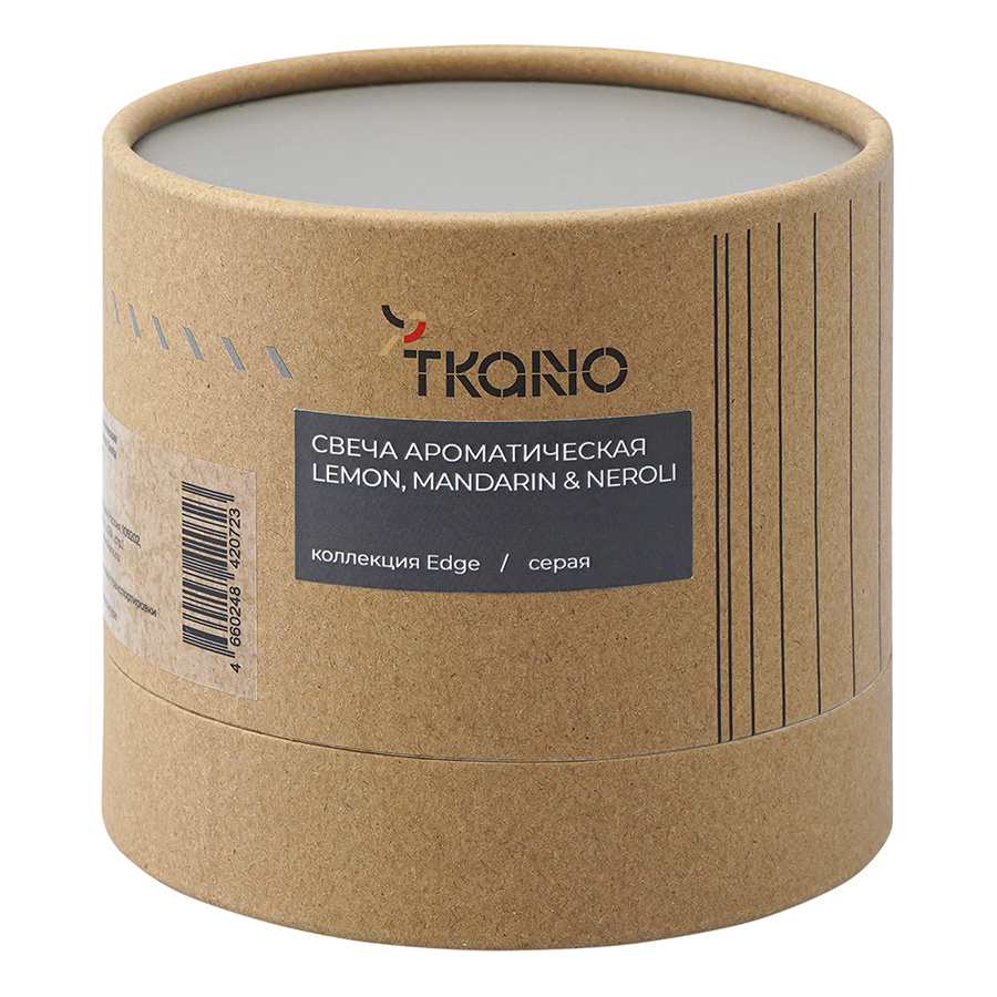 Свеча ароматическая Tkano Edge Lemon Mandarin & Neroli серая 60ч