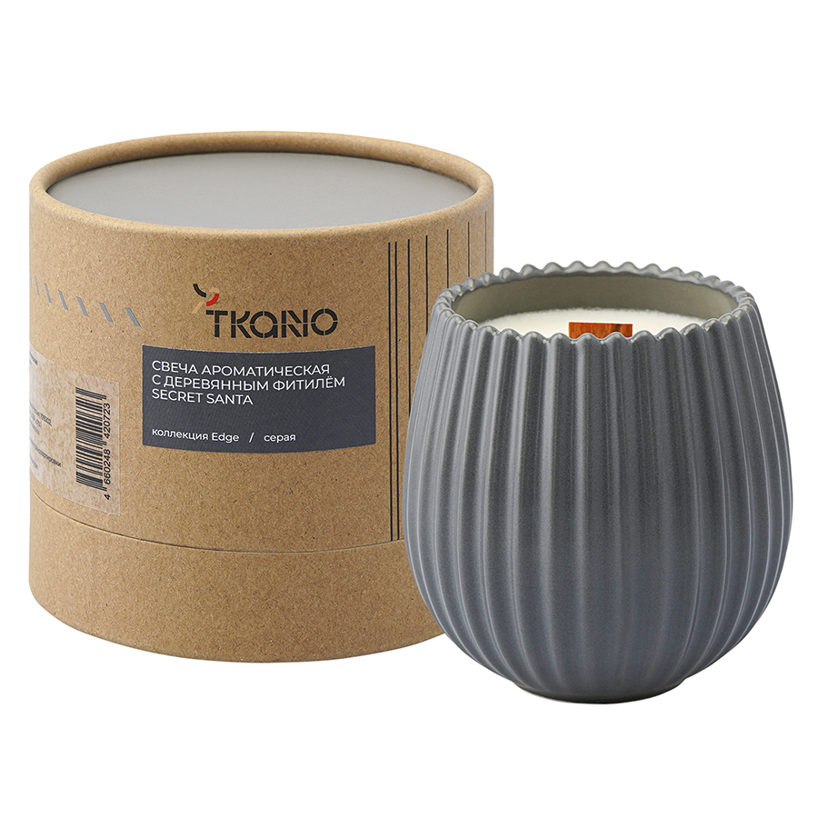 Свеча ароматическая Tkano Edge Secret Santa серая 60ч