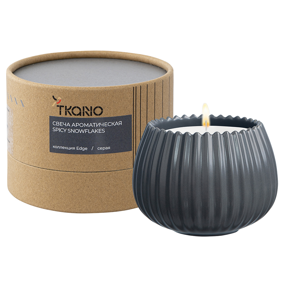 Свеча ароматическая Tkano Edge Spicy Snowflakes серая 30ч