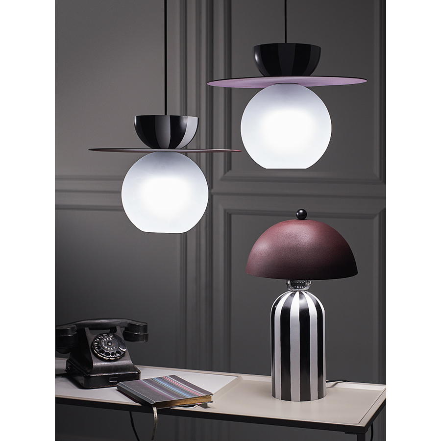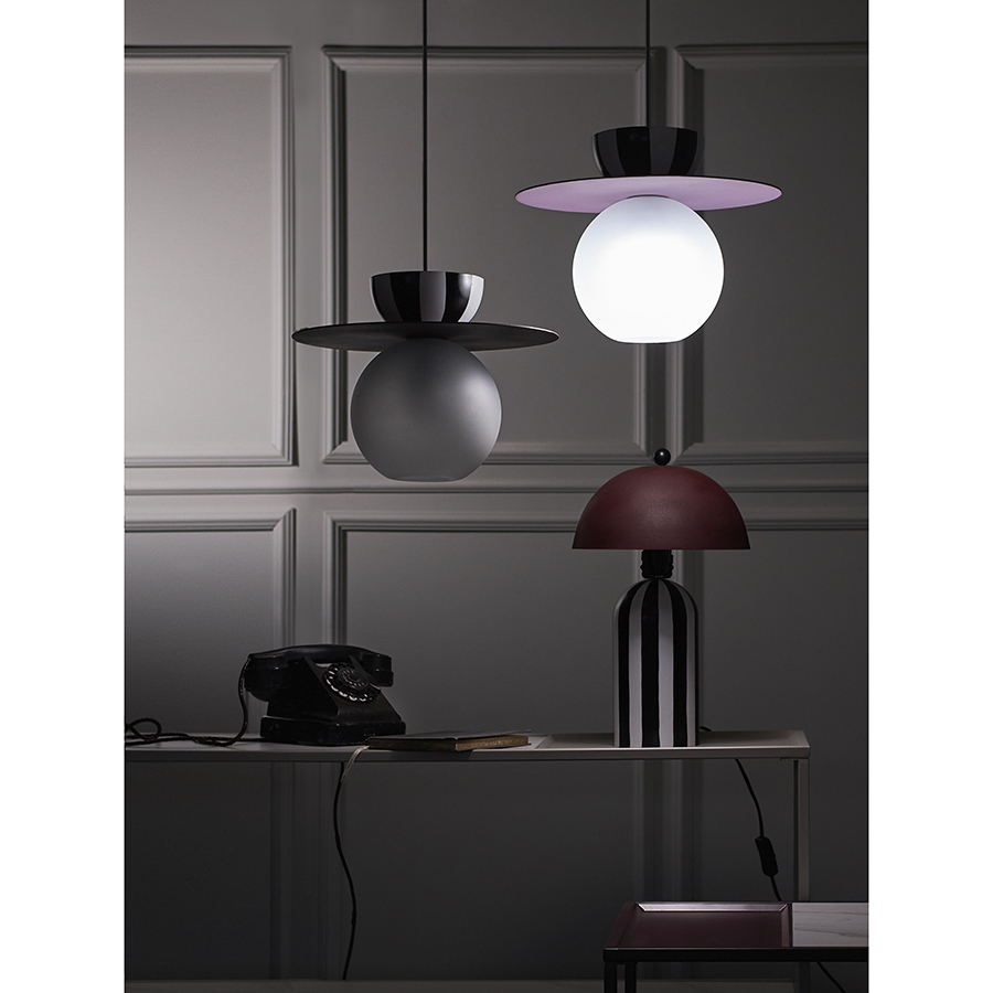 Материал: железо, алюминий, стекло. Размеры светильника: 36х36х28 см. Размеры основания: 10х10х2 см. Цвет: черный/белый/лиловый. Тип цоколя: Е27. Степень пылевлагозащиты: IP20. Максимальная мощность ламп: 25 Вт. Напряжение: 220-240 В. Длина подвеса: 50,8-127 см. Площадь освещения: 1,7 кв.м. Лампы в комплекте: нет.
