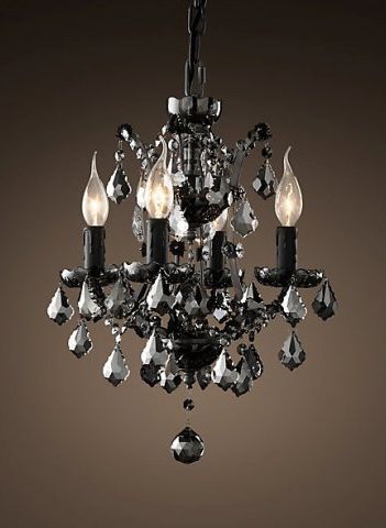 Невероятно красивый подвесной светильник со стильным оформлением. Крепление и корпус выполнены из металла черного цвета с хрустальным навесом.
