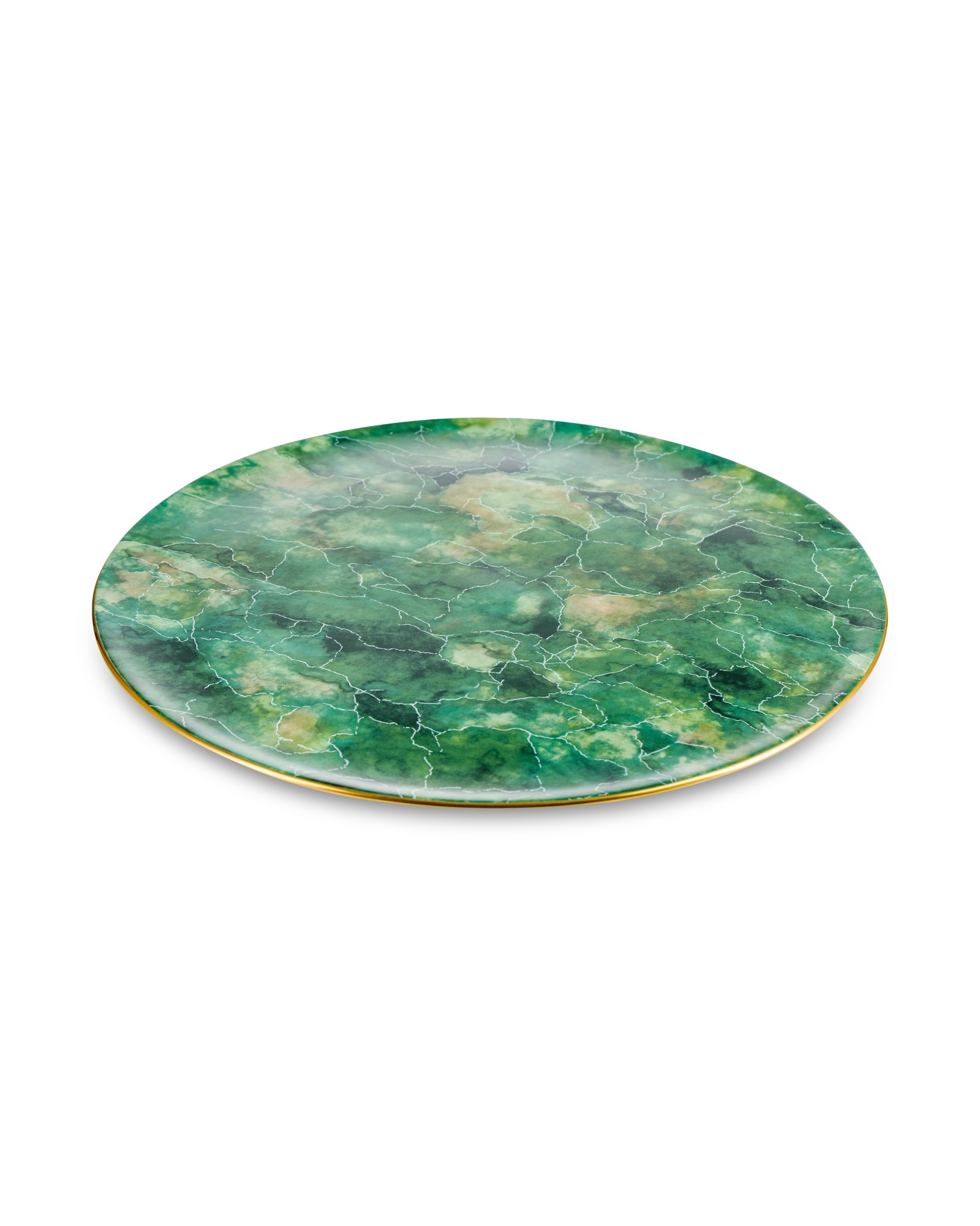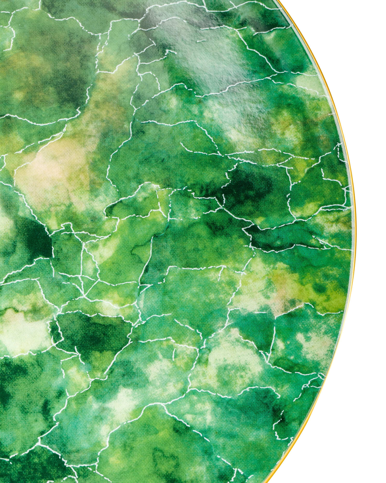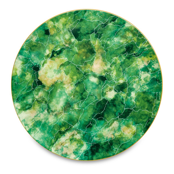 Удивите своих гостей вместе с посудой от Narumi. Обеденная тарелка из коллекции «Малахит» особенно эффектно будет смотреться на фоне белоснежной скатерти, в паре с позолоченными столовыми приборами. Рисунок филигранно имитирует природную фактуру зеленого минерала. Классическая круглая форма — максимально уместна. Диаметр — 26 см.