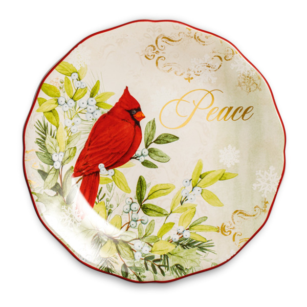 Предмет выполнен в изысканном дизайне с акварельной росписью. Центральное место композиции занимает красная птица кардинал, которую окружают цветы и зеленые веточки. Оперение алого цвета сделало ее одним из главных зимних символов в Америке, ее изображение является традиционной рождественской атрибутикой.