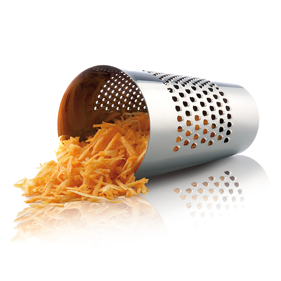 Можно натереть овощи, сыр, шоколад или всё, что подскажет ваша фантазия, прямо в симпатичное ведёрко из нержавеющей стали. Есть три разных тёрочных поверхности. Можно мыть в посудомоечной машине.