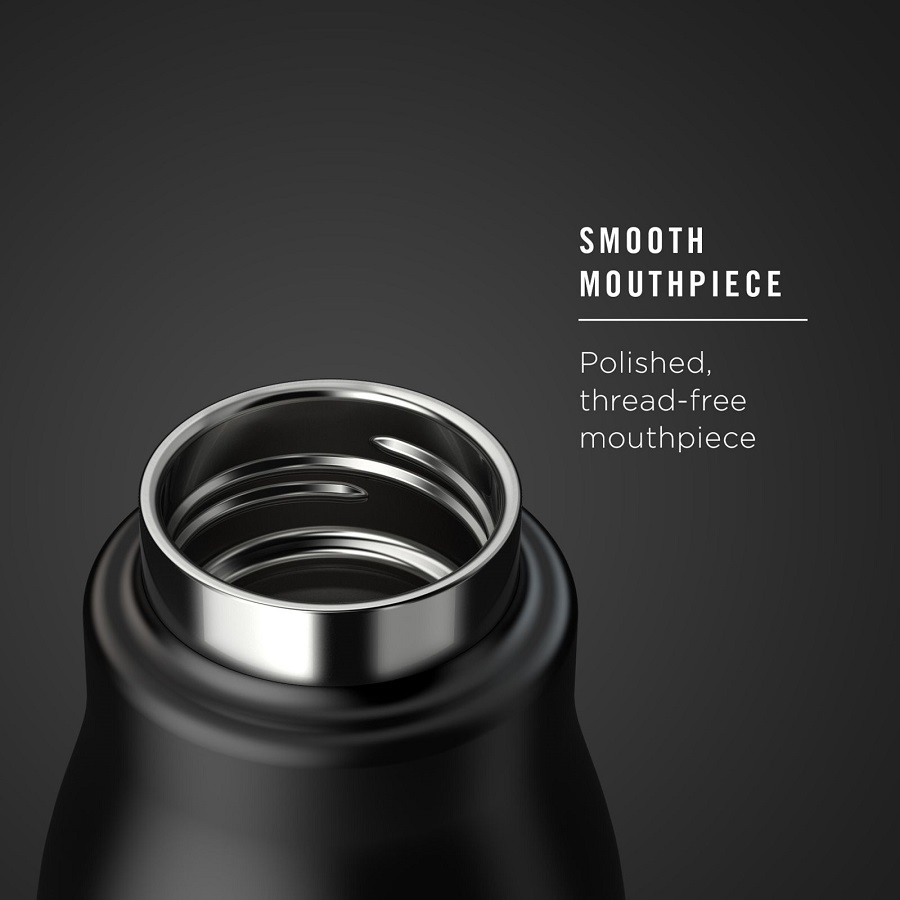 Узкое горлышко создано специально для питья, вам не потребуются дополнительные стаканы или емкости. Гладкая полированная поверхность легко очищается за считанные секунды и не накапливает на себе бактерии и грязь благодаря тому, что резьба для крышки спрятана внутри. Даже если вы находитесь на активном отдыхе или занимаетесь спортом, ваша бутылка всегда остается чистой и гигиеничной.