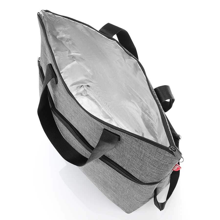 Сумка закрывается на надежную застежку-молнию. Ручки регулируются. Есть внешнее отделение на молнии. Внутри – термоизоляционный материал, который сохранит продукты в прохладе. Тепловая изоляция выполнена из высококачественной алюминиевой фольги. Материал – прочный водоотталкивающий полиэстер, выполненный из переработанного пластика PET. Объем: 18 л.
