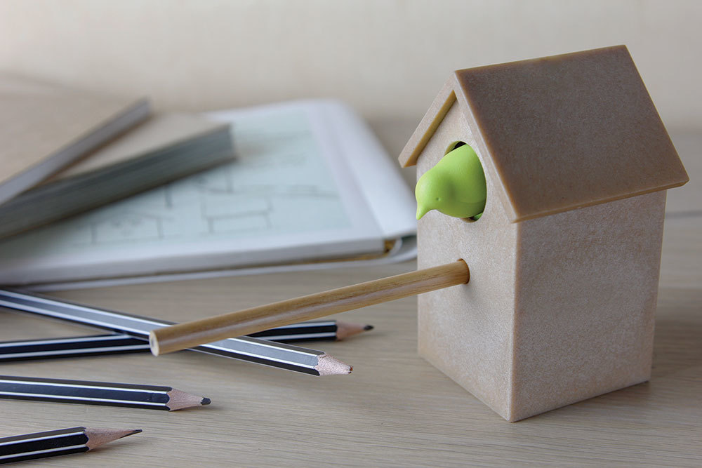 Качественное лезвие точилки быстро затачивает карандаши до нужной остроты. Контейнер вмещает в себя большое количество опилок, поэтому его можно не высыпать после каждого использования. Точилка выполнена в оригинальном стиле в виде скворечника. Такая модель украсит рабочее место дома или в офисе и не займет много места.