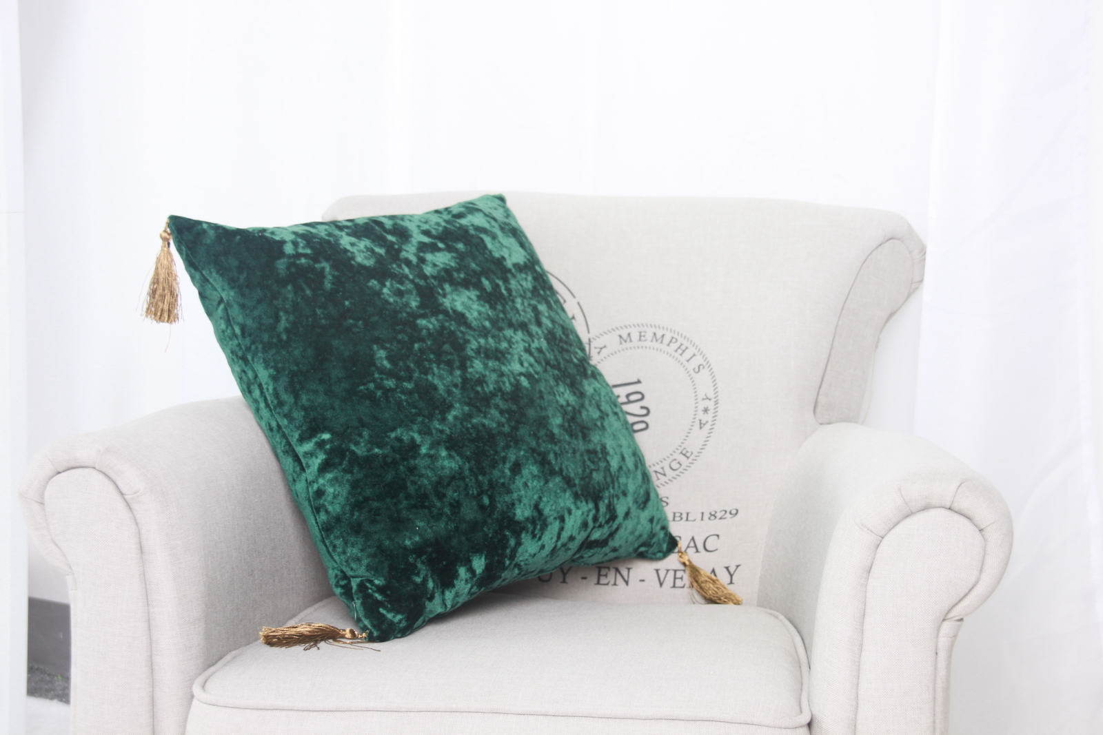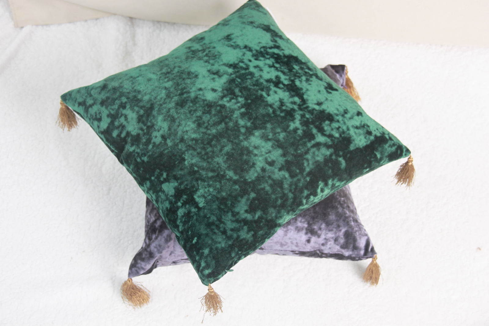 Бархатная наволочка декорированная кисточками по углам. Состав: 100% вискоза Размер: 45х45см Стирка при 30°