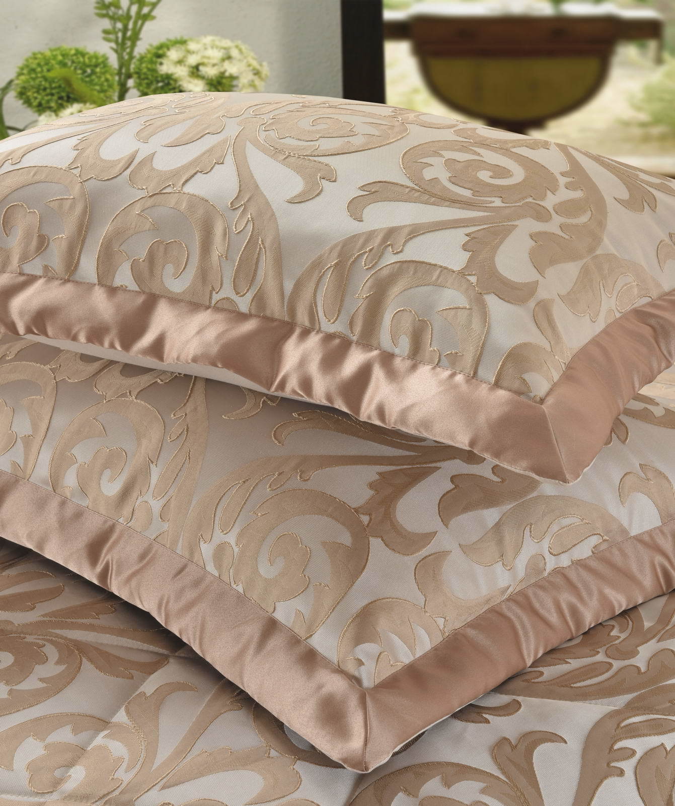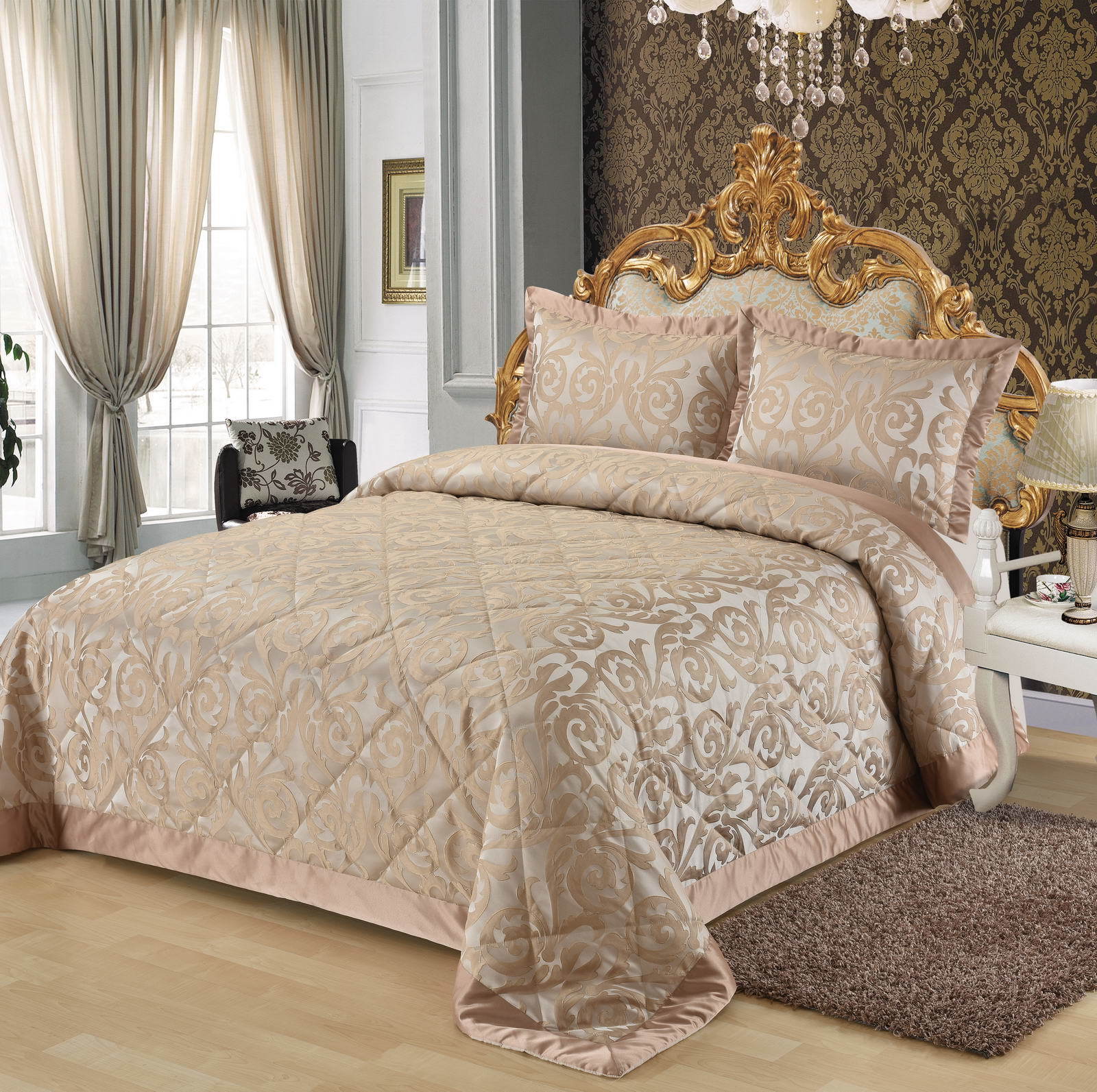 240х260 50х70(2) Роскошный комплект Цицилия состоит из покрывала и двух наволочек, выполнен в спокойных бежевых, кофейных оттенках. Классический орнамент и крупная стежка создают ощущение комфорта. Покрывало станет украшением спальни. Комплект создан из полиэстера, который очень практичнен, гипоаллергенен и не нуждается в особом уходе.