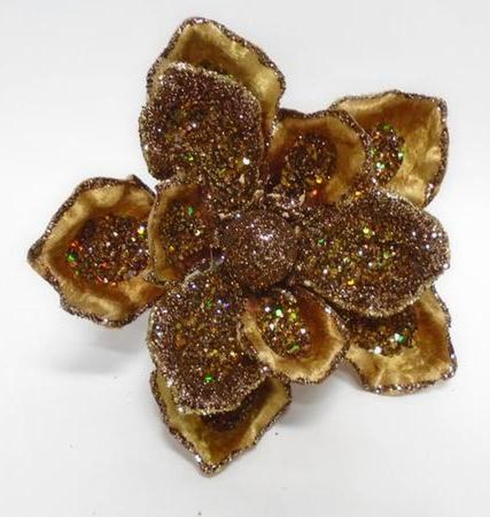 Цветок магнолия на клипсе 18см ChristmasDeLuxe premium collection коричневая