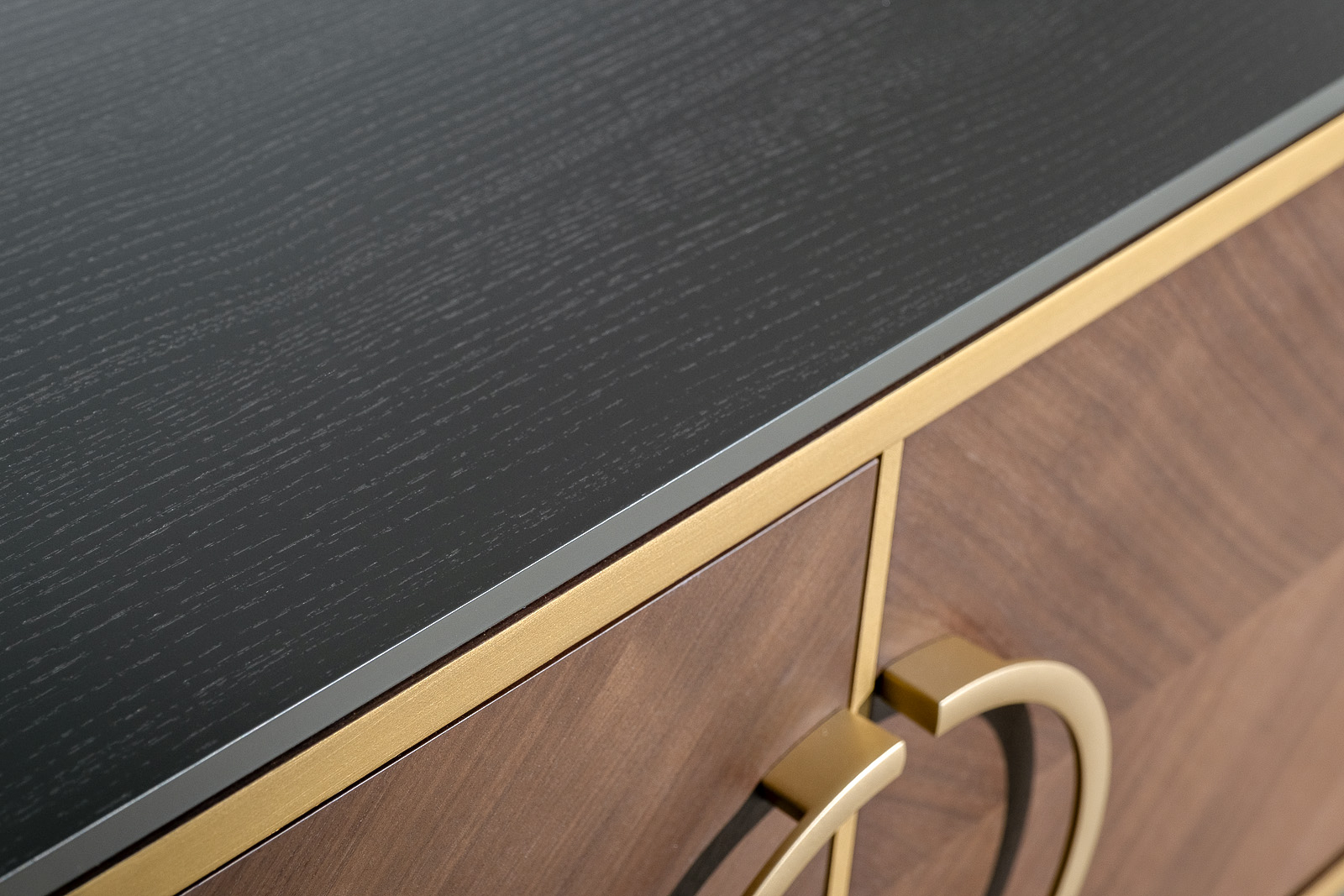 Тумба под TV 4-х дверная из коллекции "ШПОН". Коллекция "ШПОН" является авторской разработкой студии Garda Decor, в стиле ар-деко.Габариты тумбы: ширина-200см, глубина-58см, высота-40см. Фасады коллекции "ШПОН" облицованы шпоном под цвет "Американский орех", украшены объемными полукруглыми ручками цвета "матовое золото"(ручки-металл) и декоративными элементами из массива бука под цвет "матовое золото". В состав коллекции так же входит: тумба прикроватная-арт.151SV-10001; консоль-арт.151SV-10002.