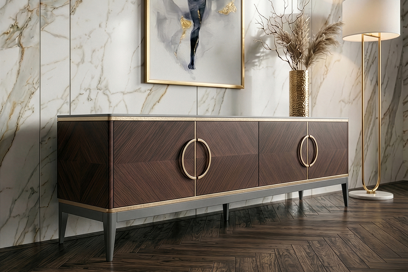 Тумба под ТВ 4-х дверная шпон 200x58x40см Garda Decor — товар бренда Garda Decor в категории «декор» для стильного интерьера и дома.