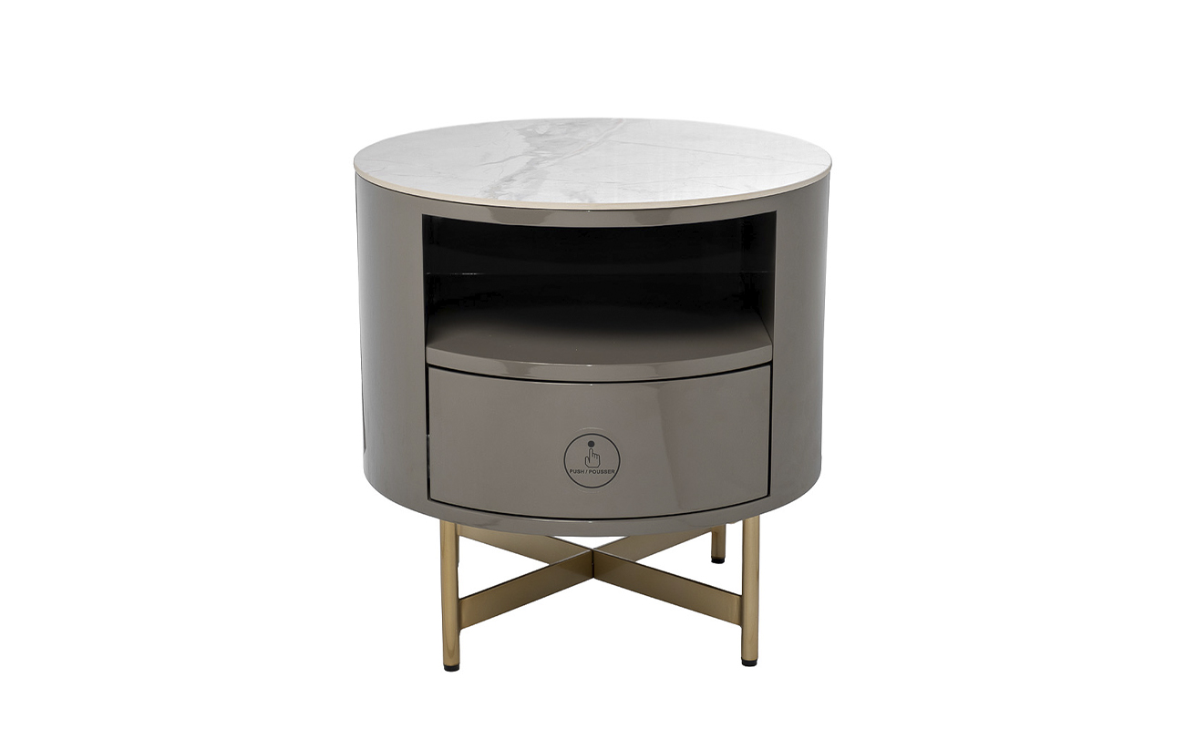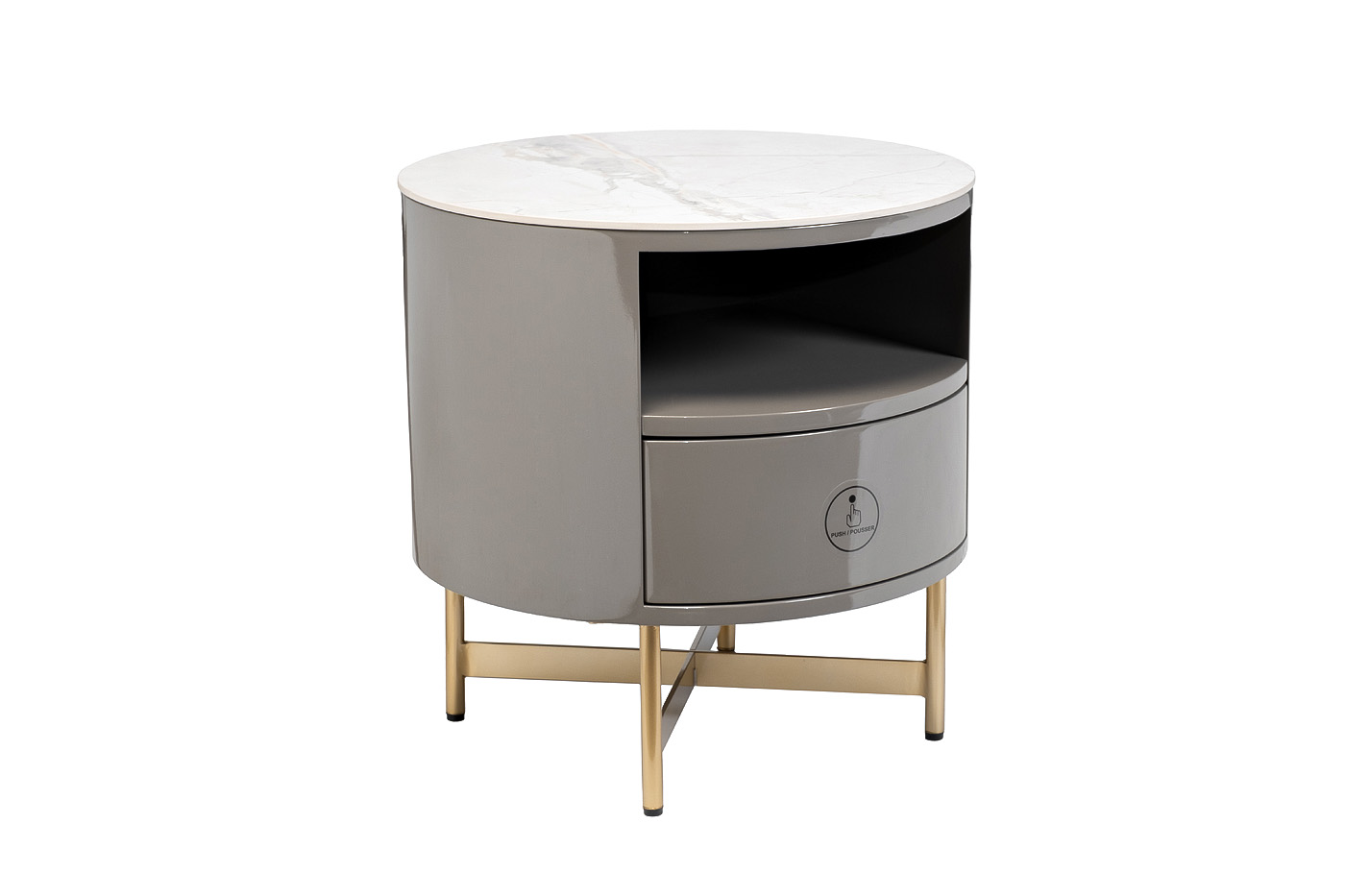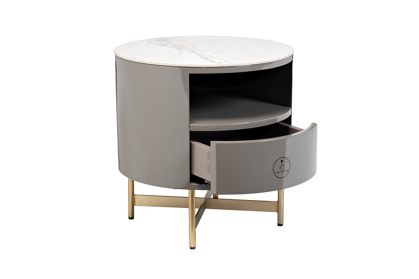 Стильная прикроватная тумбочка является неотъемлемой частью обстановки спальни. Это не только практичная и удобная мебель, но и способ сделать пространство более эстетичным и уютным. Компактная тумбочка с ящиком составит компанию кровати с велюровым изголовьем, хорошо справится с ролью подставки для светильника, заменит собой маленький журнальный столик. Она органично впишется в стилистику ар-деко, контемпорари, минимализм, неоклассика, фьюжн. За счет тонких ножек из металла модель визуально легкая, а столешница с эффектом камня подчеркивает ее оригинальный дизайн. Garda Decor предлагает купить тумбочку в спальню с доставкой по Москве и всей России.