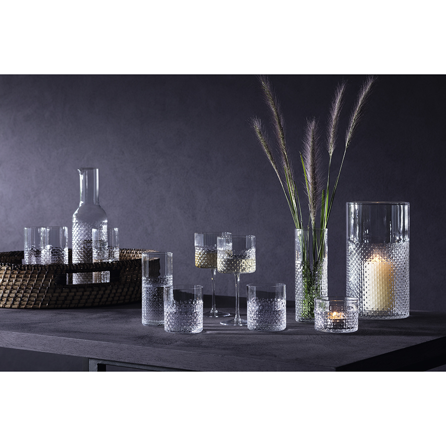 Коллекция Wicker – это посуда и аксессуары для сервировки напитков и декора помещения. Изделия выполнены в необычном дизайне с эффектом «плетеной» фактуры. Особенность производства состоит в помещении металлической сетки внутрь деревянной формы, в которой выдувается изделие. Коллекция представлена в двух вариациях: из пепельно-коричневого и прозрачного стекла.