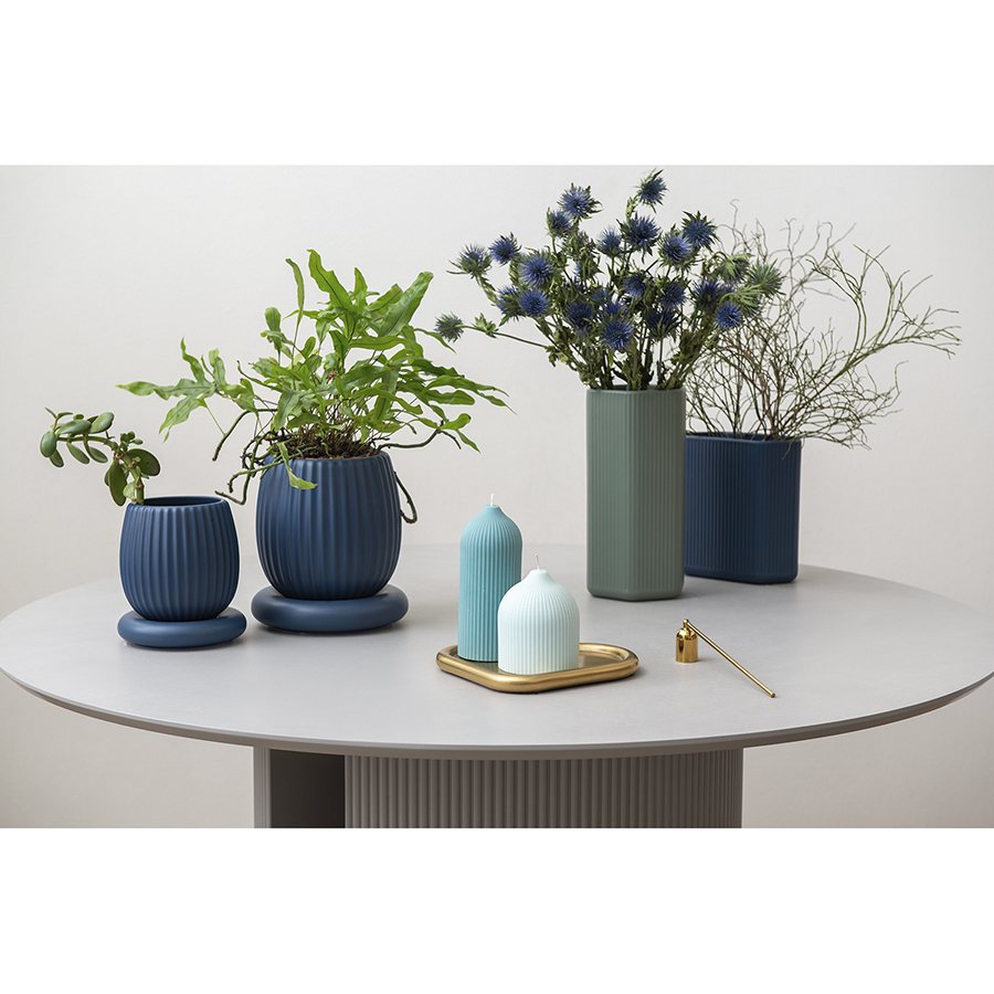 Ваза темно-синего цвета из коллекции Edge подойдет как для букетов из живых цветов, так и для сухоцветов. Простая форма вазы с фактурными гранями будет сочетаться с другими предметами из этой же коллекции, позволяя создавать интересные интерьерные композиции. Изделие выполнено из доломита, устойчивого к сколам, легкого и экологически чистого материала, снаружи и внутри покрыто матовой глазурью.