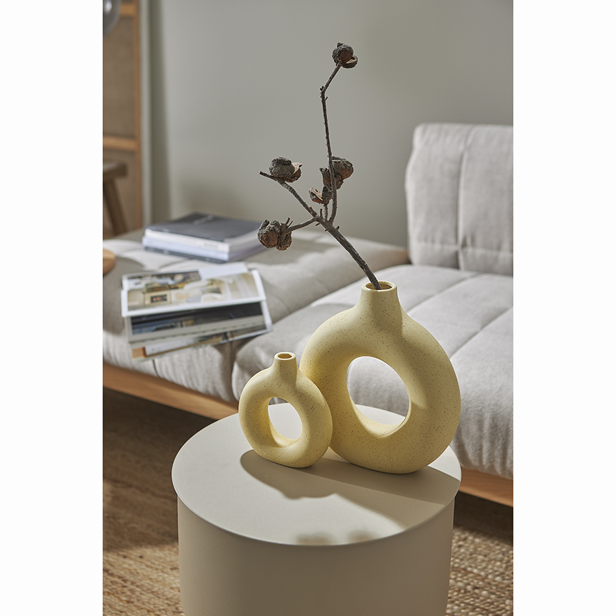 Изделие выполнено из керамики – экологичного, прочного и устойчивого к износу материала. Ваза смотрится гармонично практически в любой обстановке за счет нейтральной цветовой гаммы и минималистичного дизайна. Ее можно использовать для украшения дома, офиса, студии и любого другого пространства. Емкость идеально подходит для создания оригинальных композиций из сухоцветов.