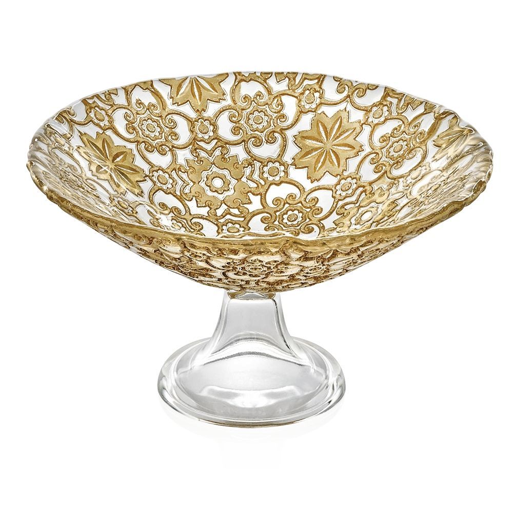 Ваза для фруктов с изысканным золотым декором. Она изготовлена из стекла ручной работы и займет достойное место на Вашем праздничном столе.