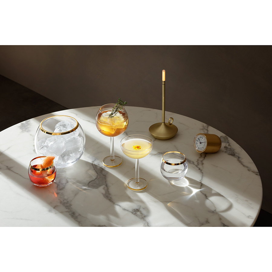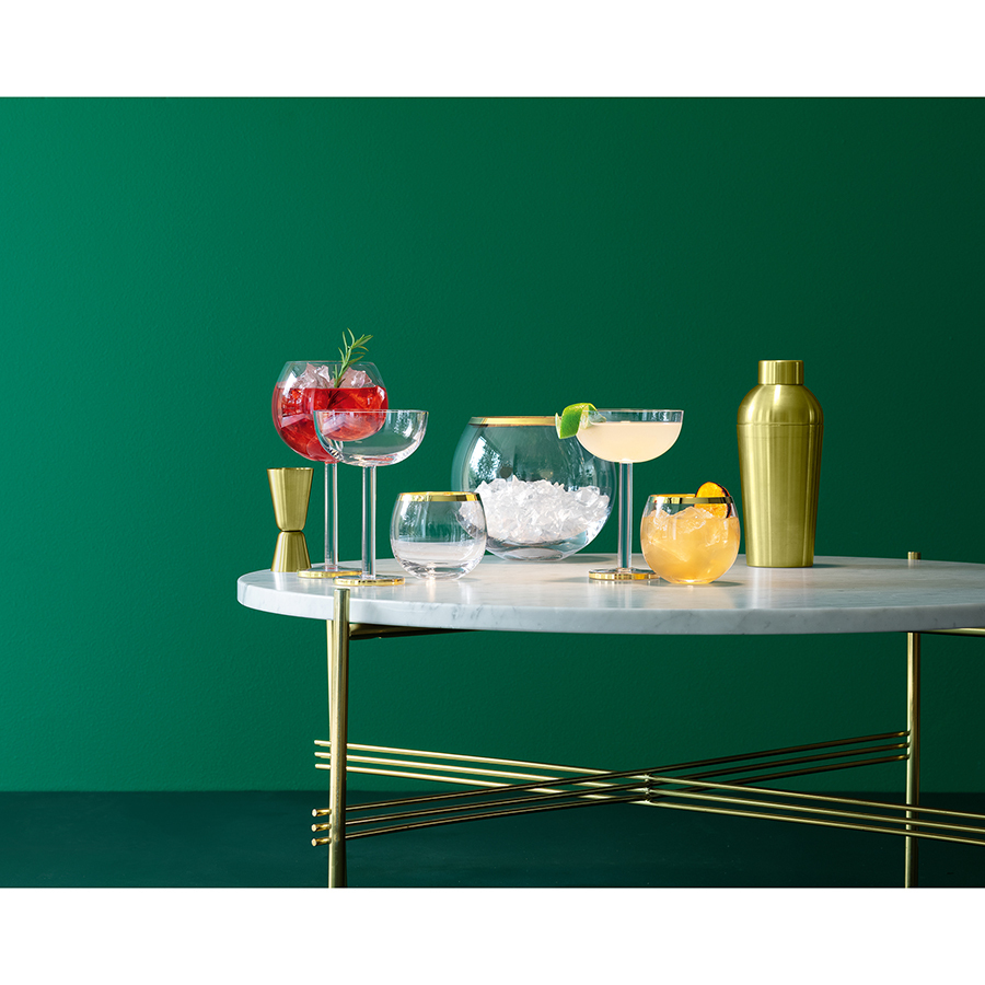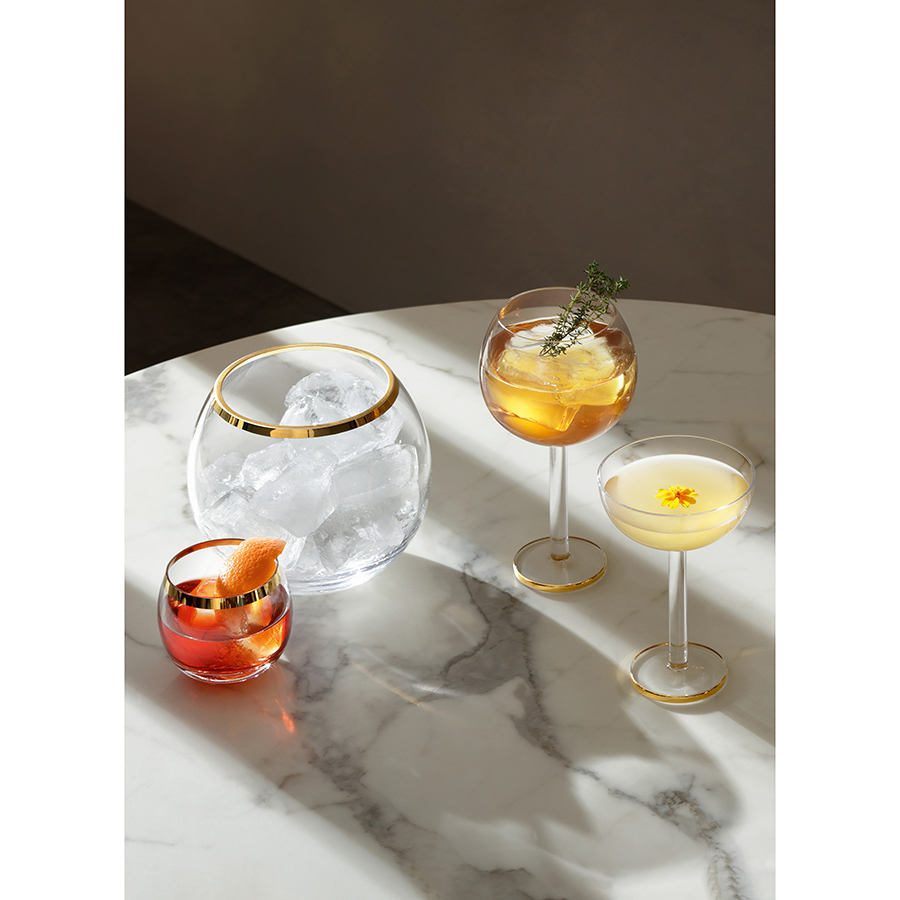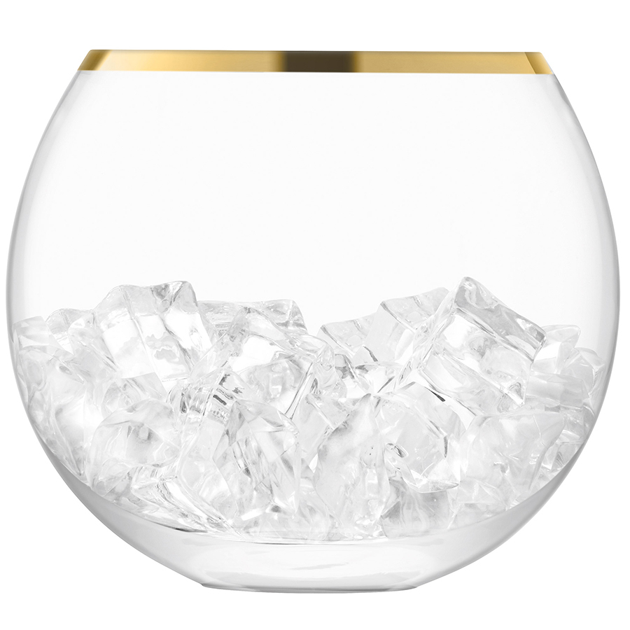 Ведерко для льда в современном дизайне со стильным золотистым ободком украсит стол и прекрасно подойдет для подачи шампанского.