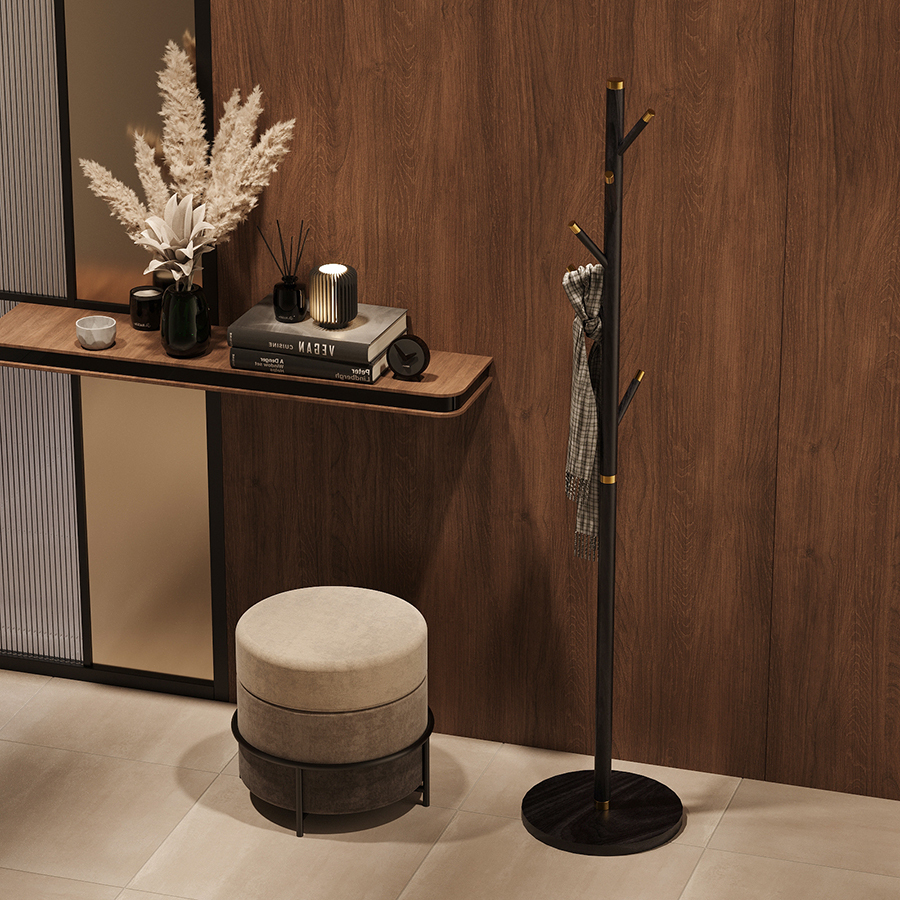 Вешалка напольная Bakken – не просто функциональный элемент прихожей, но и стильный акцент интерьера. Отсылка к природным мотивам позволяет вписать модель в различные стилевые решения, включая эко, сканди, фьюжн, эклектика и другие. Конструкция имеет прочное железное основание с хромированным покрытием, устойчивым к коррозии и внешним воздействиям. Благодаря компактности вешалка не занимает много места в помещении, подходит для малогабаритных пространств.