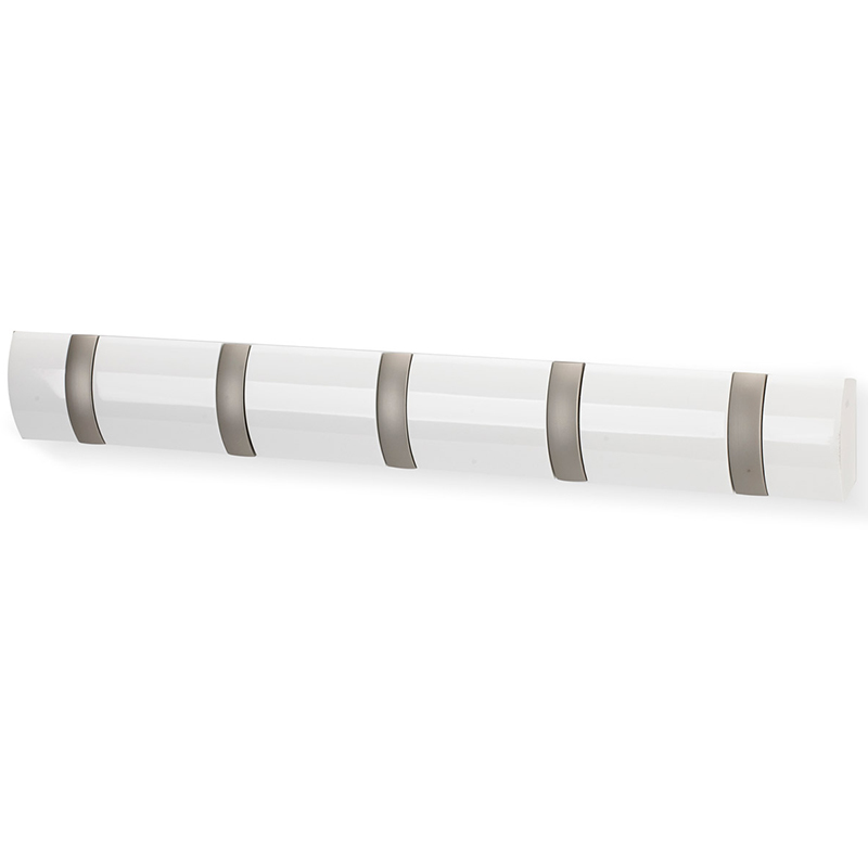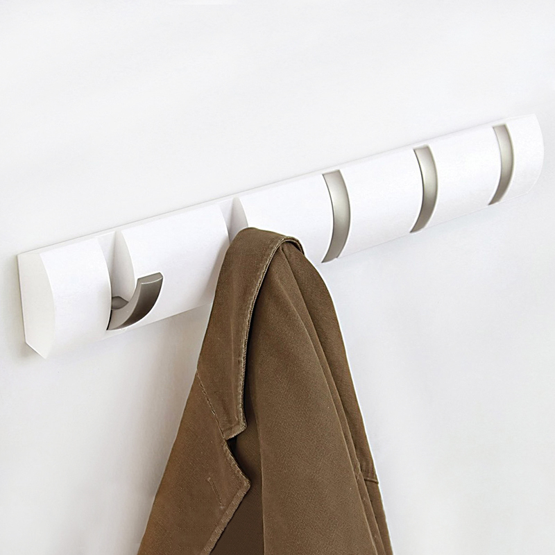 Стильная и прочная , ,вешалка интересной формы. Имеет 5 откидных алюминиевых крючов: когда они не используются, то складываются внутрь, превращая конструкцию в абсолютно гладкую поверхность. Идеально для маленьких прихожих и ограниченных пространств.