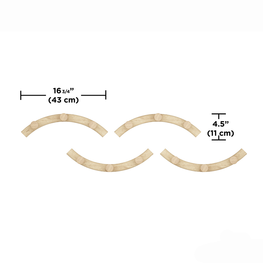 Вешалка настенная Slinka состоит из четырех элементов дугообразной формы, которые можно размещать любым удобным образом, в зависимости от дизайна помещения и его площади. Каждая часть имеет по три крючка для хранения вещей.