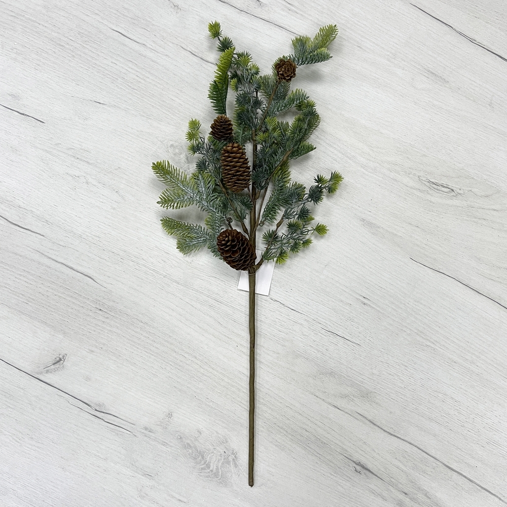 Ветка еловая с шишками 60см ChristmasDeLuxe зеленая