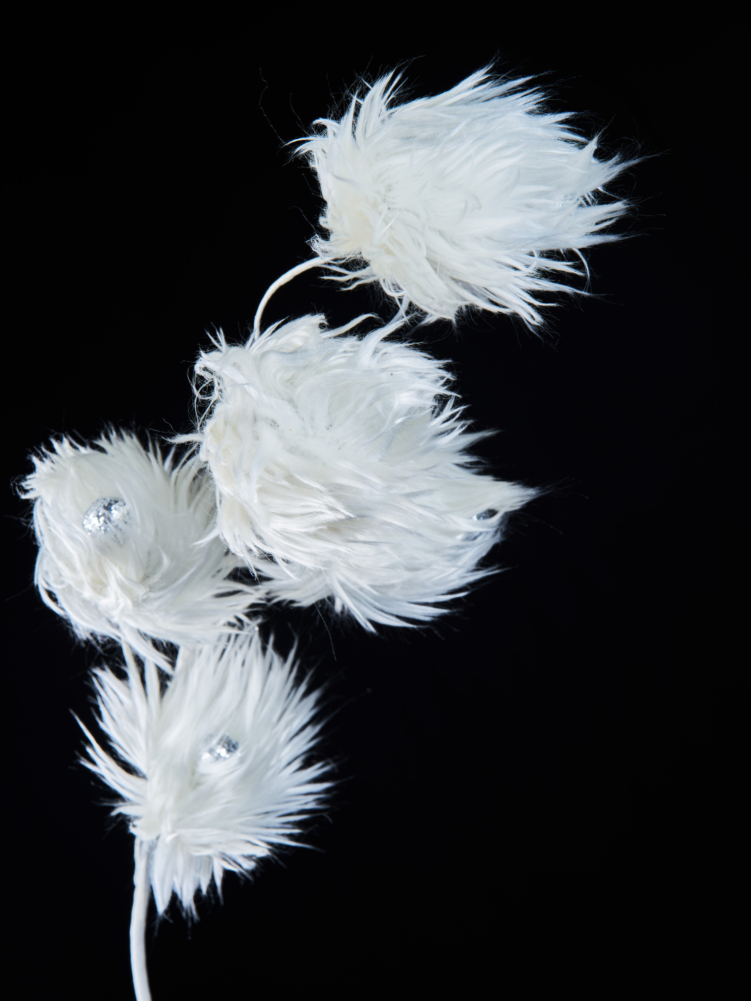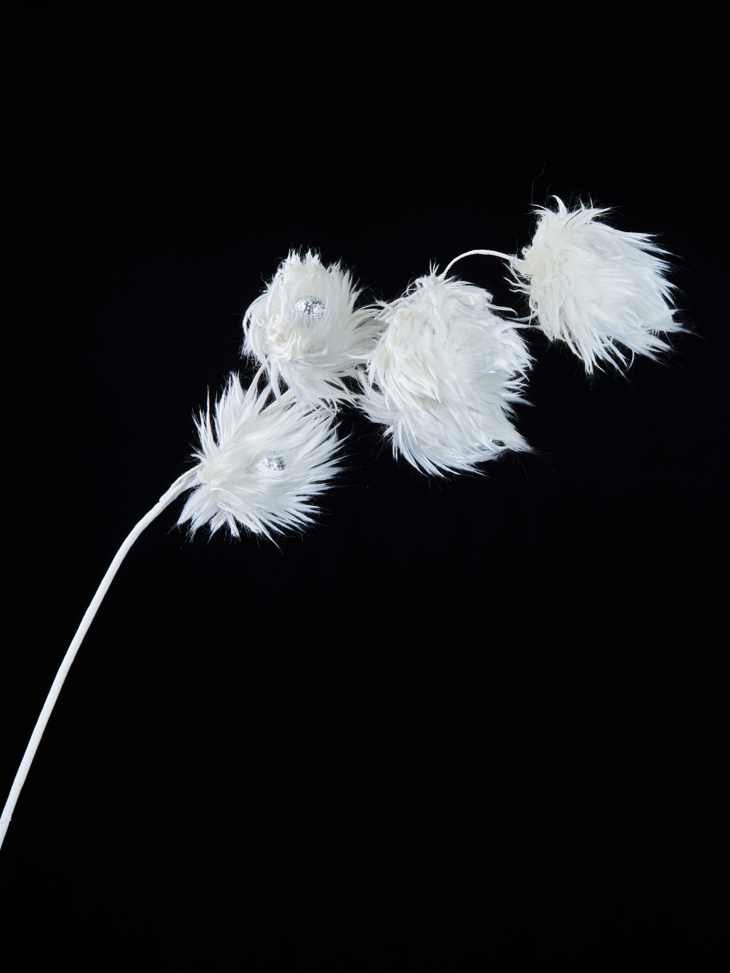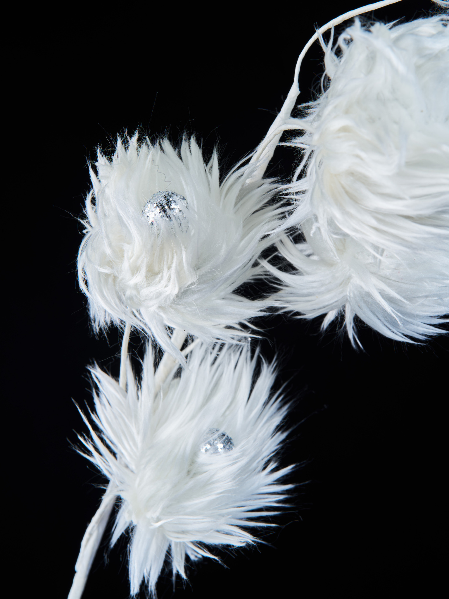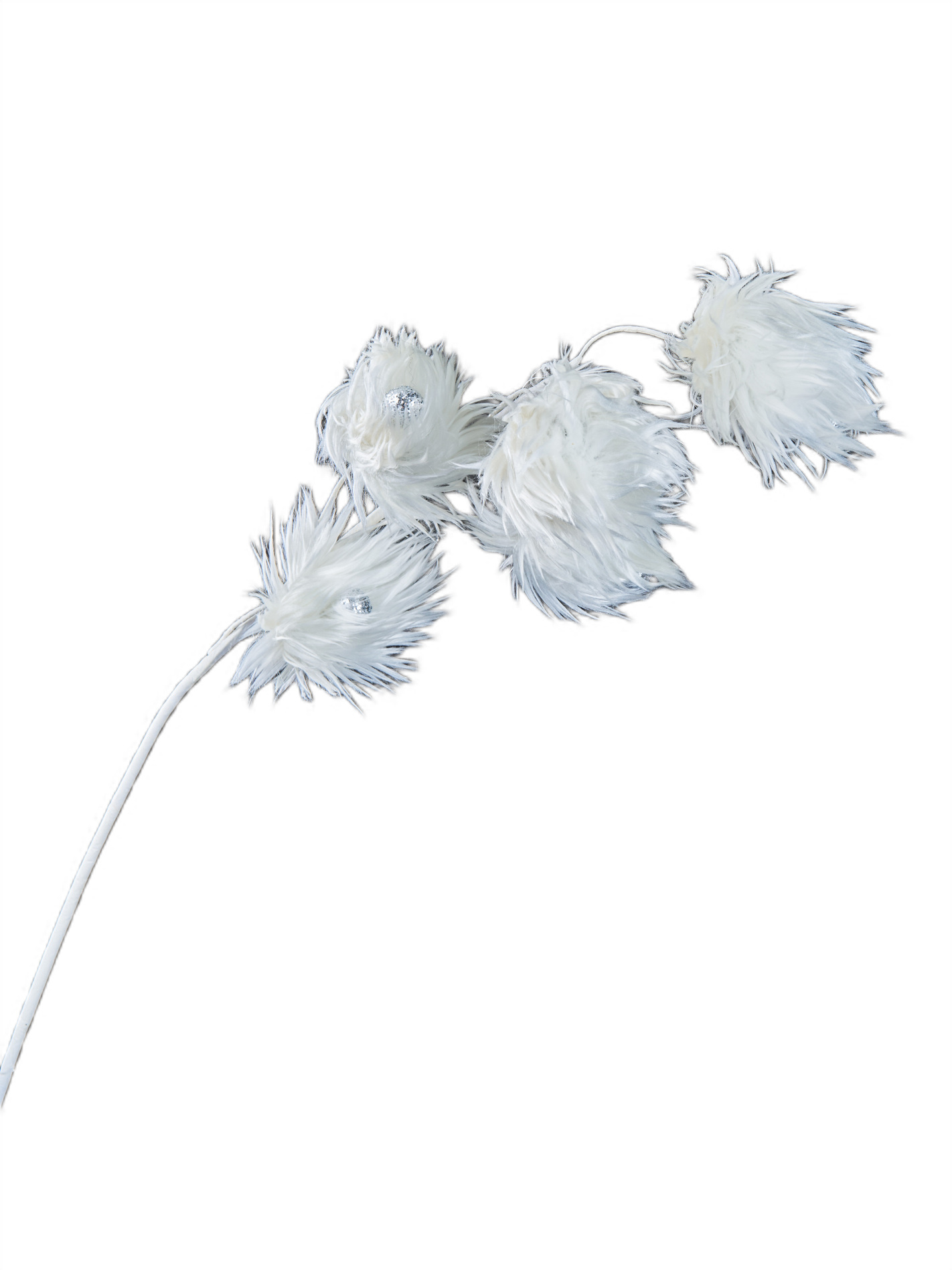 Веточка с пушистыми цветками 74см ChristmasDeLuxe белая с серебром