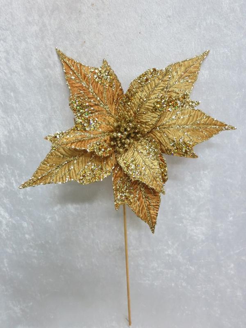 Веточка с цветком пуансеттии 64см ChristmasDeLuxe premium collection золотая