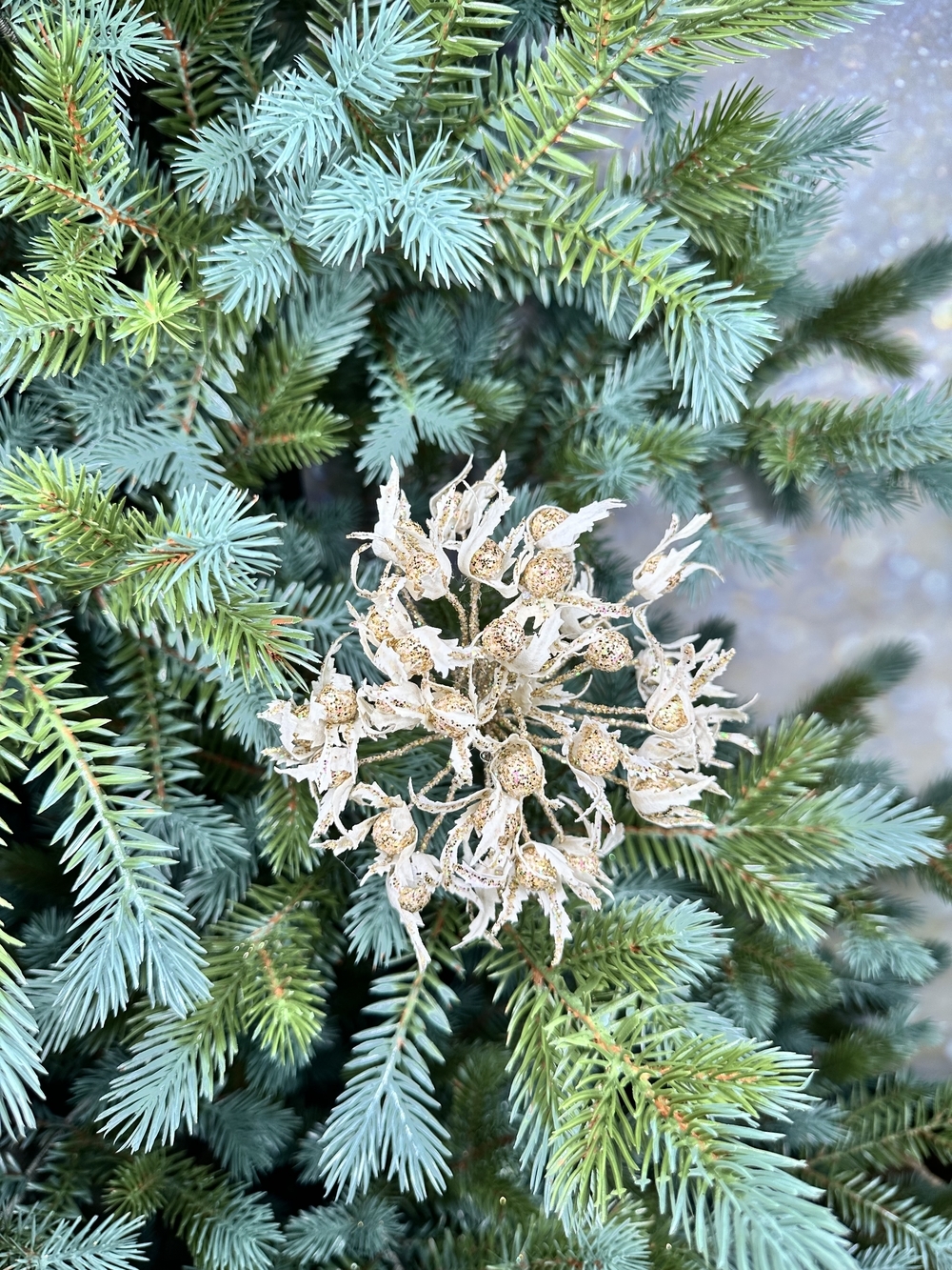 Веточка с ягодами 56см ChristmasDeLuxe premium collection кремовая