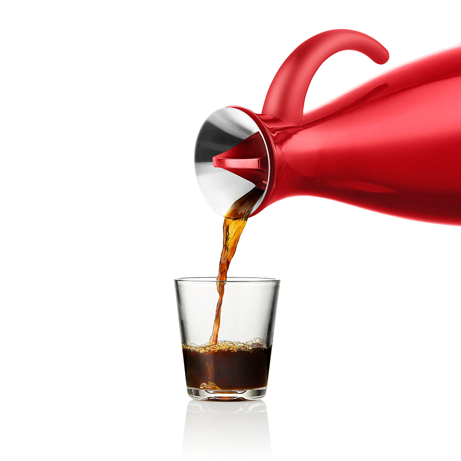 Стильный термокувшин оснащён специальным горлышком, которое не позволит пролить ни капли мимо. Внутренняя стеклянная колба облачена в изящный пластиковый чехол со специальной ручкой, удобной для захвата. Концепция этого кувшина собрала множество наград и позволяет использовать его для любой сервировки.