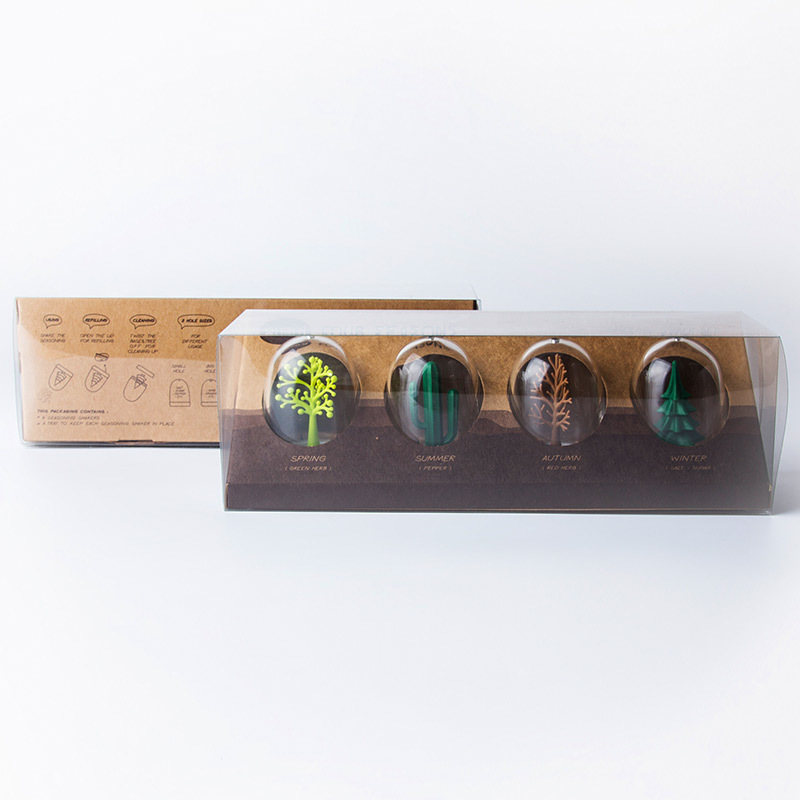 Идеальный вариант для хранения специй и сыпучих продуктов. В таких оригинальных и стильных емкостях содержимое не испортится и не отсыреет благодаря специальному составу, из которого изготовлены хранители. Каждое растение , ,будет ассоциироваться с определенным видом приправы или пряности. Послужит замечательным, а самое главное удобным украшением для Вашего обеденного стола. В лоток входит 4 одинаковые емкости.
