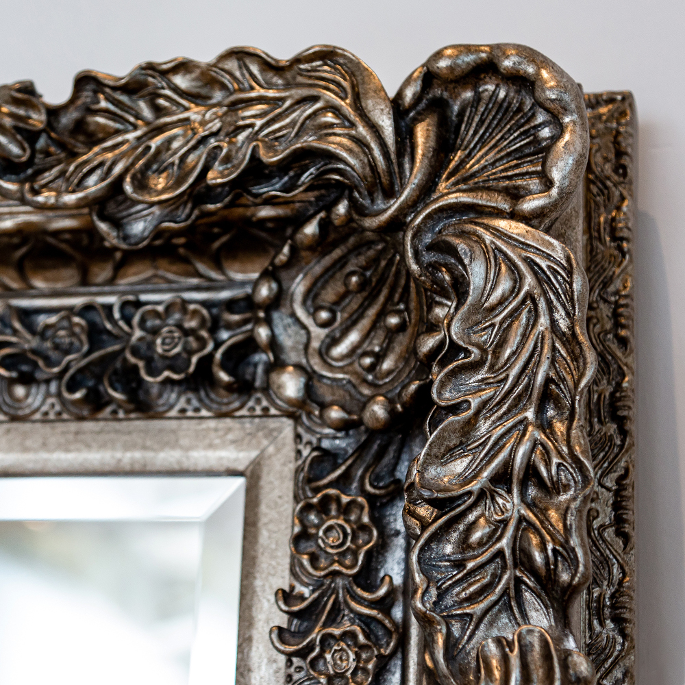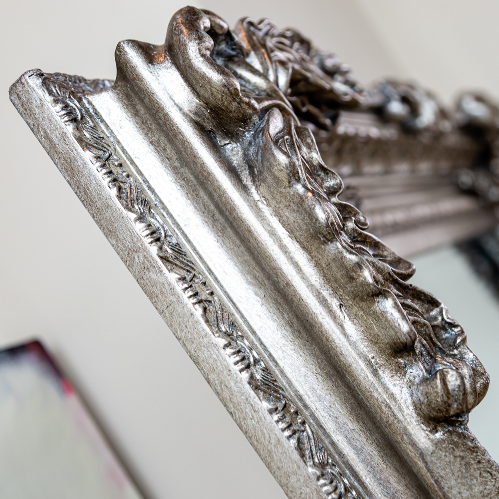 Кружевные дворцовые дизайны, как правило, успешно вписываются в разнообразные стили: классика не подстраивается под интерьер, а отражает его в свете собственного достоинства. Состаренный бронзовый цвет рамы бесспорно сочетается с любыми интерьерными палитрами. Зеркало Маркиза готово стать главным интерьерным украшением дома. Просторный размер адресован гостиной комнате, холлу и прихожей, уместен в столовой и спальне. Роскошь фацетного контура доступна зеркалам толщиной не менее 4 мм. От толщины стекла зависит и точность отражения. Для домашних зеркал толщина 4 мм обещает отражение без искажений. Рама изготовлена из натурального дерева, украшенного резной отделкой из полиуретана. Зеркала от Объекта мечты - классический выбор Вашего интерьера.