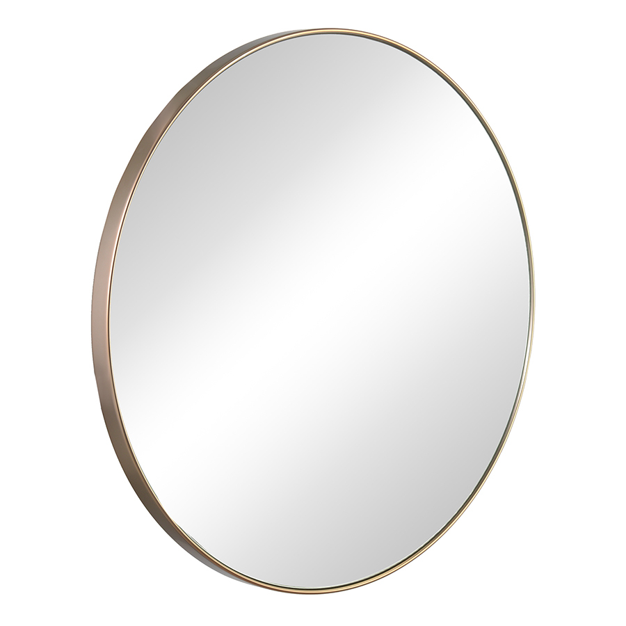 Круглое зеркало Folonari отлично впишется в любой современный интерьер. Идеально ровное стекло с тонким слоем металлической амальгамы не боится влаги, дает глубокое отражение без искажений и отличается длительным сроком эксплуатации. Рама выполнена из металла с отделкой под золото. Надежное крепление с легкостью удерживает всю конструкцию на вертикальной стене.