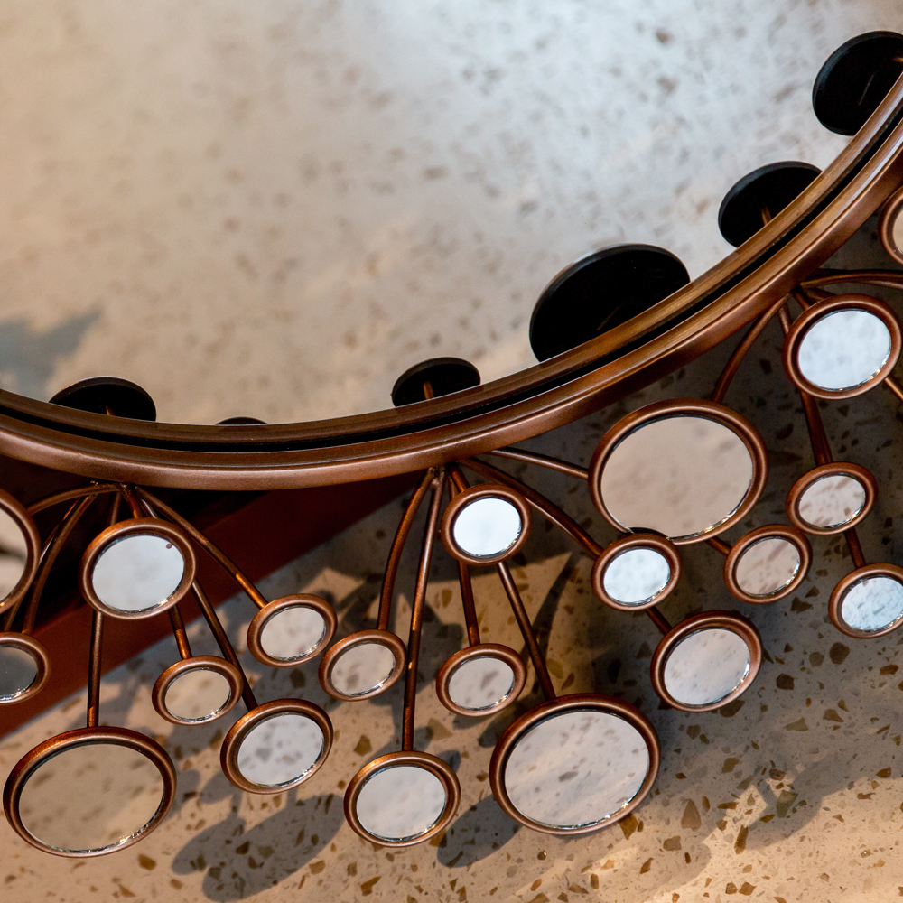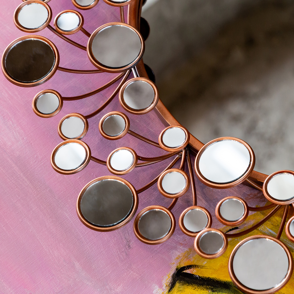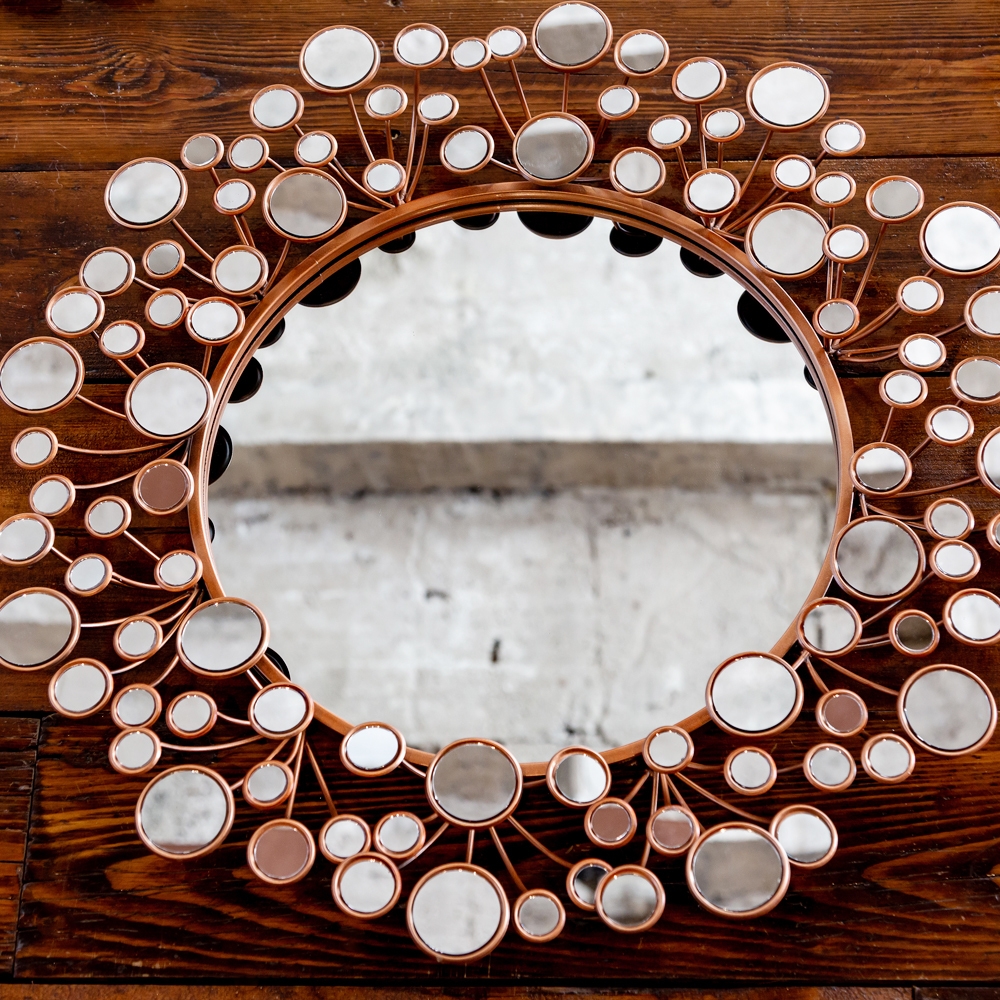 Бытовая функция отражения осталась для зеркал в прошлом веке. В наши дни они нацелены в первую очередь на украшение и оригинальность наших интерьеров. Сансет - эталонный пример интерьерного дизайнерского зеркала. Отражая стиль и респектабельность, в любых планировках оно, подобно мишени, моментально заявляет центр интерьерного внимания. Зеркало, избравшее прототипами солнце и цветы, заведомо комфортно, обаятельно и романтично. Размер, цвет и солнечный дизайн подходящи для любых домашних помещений, особая рекомендация - детской комнате. Интерьерная мода сегодня увлечена розовым золотом, - умиротворяющим романтичным оттенком, аурой свежести и легкости. Круглые зеркала заведуют интерьерным балансом, логикой и гармонией. Обладая собственной симметрией, они не претендуют на центральное расположение, готовые украсить любое скучающее пространство Вашего дома. Металлические рамы прочны, долговечны и неприхотливы в уходе. Вы можете смело пользоваться чистящими средствами для зеркала, не опасаясь повредить раму. Зеркала от Объекта мечты - солнечный климат Вашего интерьера.