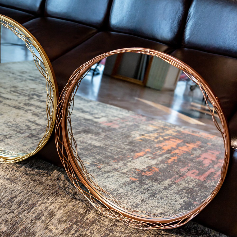 В легком открытом зеркале Лорентин источником отраженного света становится не только зеркальный круг, но и рама, искрящаяся переливами розового золота. Этот нежный романтичный оттенок будто бы специально создан для этого невесомого зеркала, заряжающего интерьер свежестью и простором. Классический золотой цвет гармонирует с любым интерьерным окружением. Круглые зеркала заведуют интерьерным балансом, логикой и гармонией. Обладая собственной симметрией, они не претендуют на центральное расположение, готовые украсить любое скучающее пространство Вашего дома. Металлические рамы прочны, долговечны и неприхотливы в уходе. Вы можете смело пользоваться чистящими средствами для зеркала, не опасаясь повредить раму. Зеркала от Объекта мечты - легкость и простор Вашего интерьера.