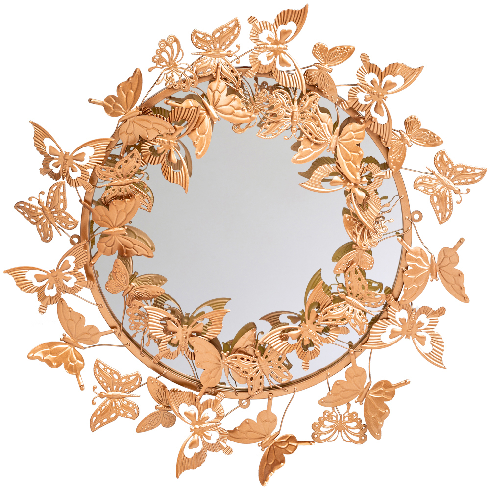 В поиске интерьерных формул доверьтесь естественным природным рецептам: для зеркала, воплощающего функции легкости и света, образ бабочки логичен и обаятелен. Бытовая функция отражения осталась для зеркал в прошлом веке. В наши дни они нацелены в первую очередь на украшение и оригинальность наших интерьеров. Гвендолин - эталонный экземпляр интерьерного дизайнерского зеркала. Отражая стиль и респектабельность, в любых планировках оно, подобно мишени, моментально заявляет центр интерьерного внимания. Розовое золото - дизайнерское открытие, охватившее интерьерную моду 2020. Этот нежный романтичный оттенок будто бы специально смешан для порхающего зеркала Гвендолин. Размер, дизайн и цвет подходящи для любых домашних и загородных помещений, особая рекомендация - детской комнате. Круглые зеркала заведуют интерьерным балансом, логикой и гармонией. Обладая собственной симметрией, они не претендуют на центральное расположение, готовые украсить любое скучающее пространство Вашего дома. Металлические рамы прочны, долговечны и неприхотливы в уходе. Вы можете смело пользоваться чистящими средствами для зеркала, не опасаясь повредить раму. Зеркала от Объекта мечты - солнечный климат Вашего интерьера.