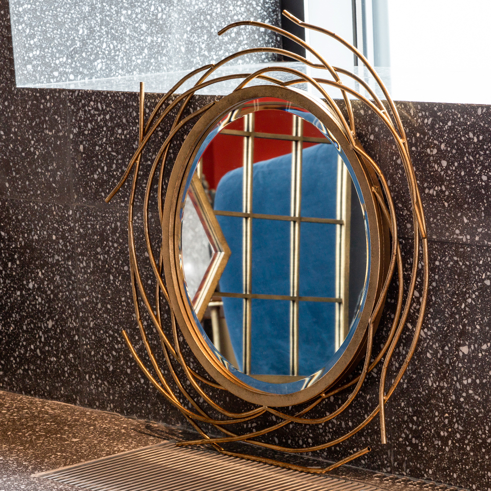 То ли веточка, а то ли видение… Зеркало Бильбао, увитое множеством веточек цвета теплой амбры – тот самый случай, когда эти нежные сплетения вокруг зеркального полотна не табу, а единственное верное интерьерное решение. И каким бы прекрасным ни оказался декабрь, преждевременно заманить весну веткой дерева, готовой к пробуждению почек – всегда хорошая идея. Круглая золотая оправа зеркала Бильбао символизирует солнечные протуберанцы, назначенные нашим интерьерам для комфорта и гармонии. Зеркальное ядро освежает мерцающая фацетная грань. Удобный размер (Ø 80 см) импонируют большинству домашних помещений, а состаренный золотой цвет рамы бесспорно гармоничен разнообразным интерьерным расцветкам.