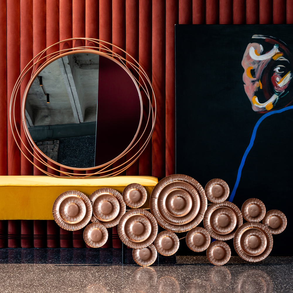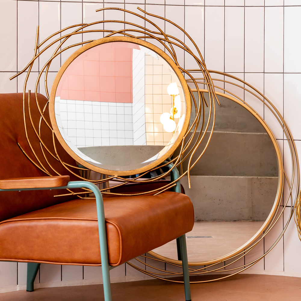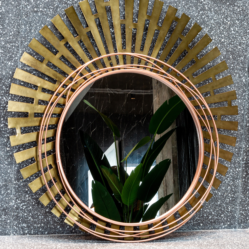 Бытовая функция отражения осталась для зеркал в прошлом веке. В наши дни они нацелены в первую очередь на украшение и оригинальность наших интерьеров. Гелиос - эталонный пример интерьерного дизайнерского зеркала. Отражая стиль и респектабельность, в любых планировках оно, подобно мишени, моментально заявляет центр интерьерного внимания. Классический золотой цвет оправы гармоничен любому интерьерному окружению. Размер, дизайн и цвет подходящи для любых домашних и загородных помещений. Круглые зеркала заведуют интерьерным балансом, логикой и гармонией. Обладая собственной симметрией, они не претендуют на центральное расположение, готовые украсить любое скучающее пространство Вашего дома. Металлические рамы прочны, долговечны и неприхотливы в уходе. Вы можете смело пользоваться чистящими средствами для зеркала, не опасаясь повредить раму. Зеркала от Объекта мечты - солнечный климат Вашего интерьера.
