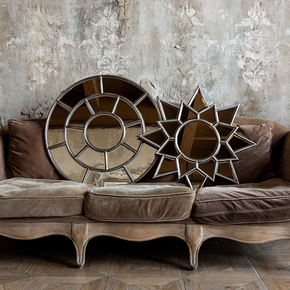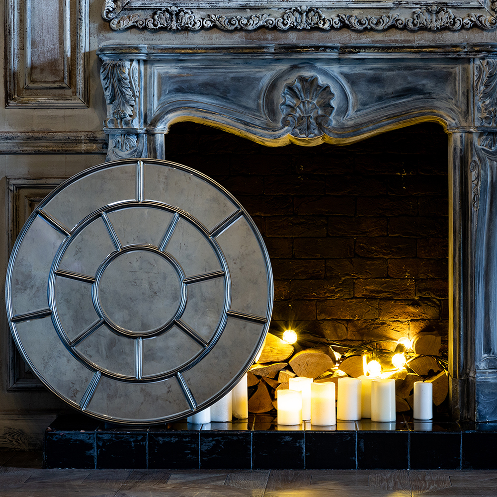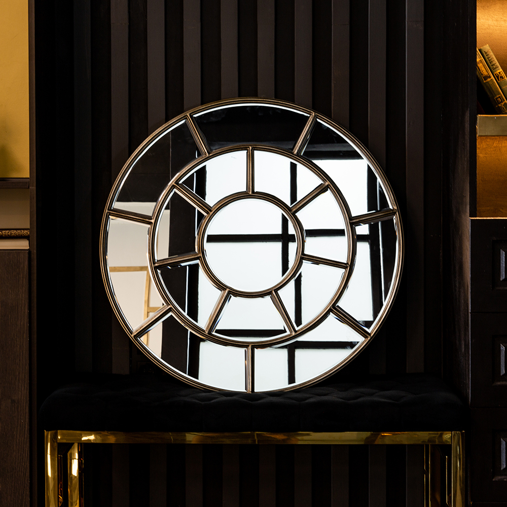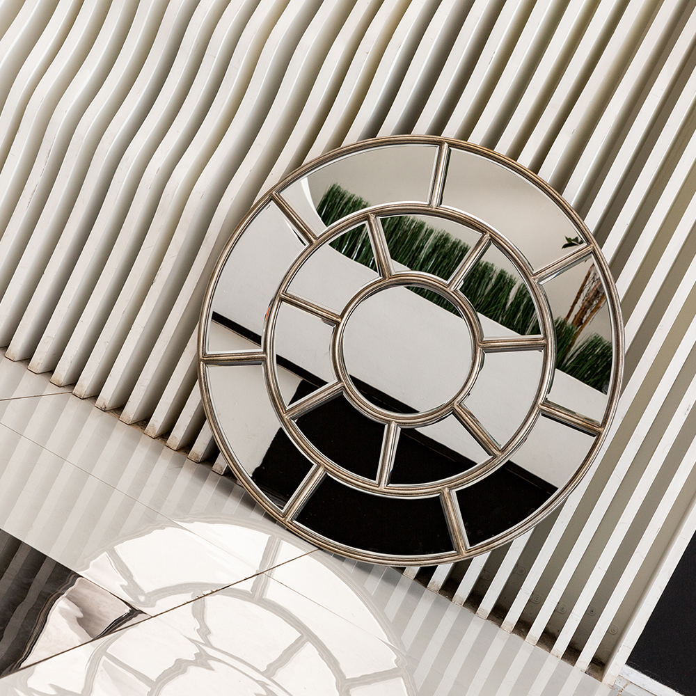Зеркало круглой формы со множеством переплетов по зеркальному полотну - словно витраж в замке Франции. В Объекте мечты точно знают, как превратить даже обычное пространство в звезду интерьерного дизайна. Смотреться в зеркало, как отдыхать с огоньком и блеском в глазах – и тогда даже самый сдержанный интерьер преобразит зеркало Кодрэ в необычном исполнении. Зеркало Кодрэ – попытка показать, что стоит за созданием этих предметов интерьера. Работу с чертежами, обычно скрытую от посторонних глаз, на этот раз можно увидеть прямо на зеркальном полотне. Одной из основных функций круга является разграничение внутреннего и внешнего пространства. Считается, что круг – идеальный охранный знак, все помещенное внутрь круга становится недосягаемым для всего враждебного. Зеркала, покрытые серебряной амальгамой, обладают ровной поверхностью, не боятся влаги, они долговечны и не подвержены коррозии. Металлические рамы прочны, долговечны и неприхотливы в уходе. Вы можете смело пользоваться чистящими средствами для зеркала, не опасаясь повредить раму.