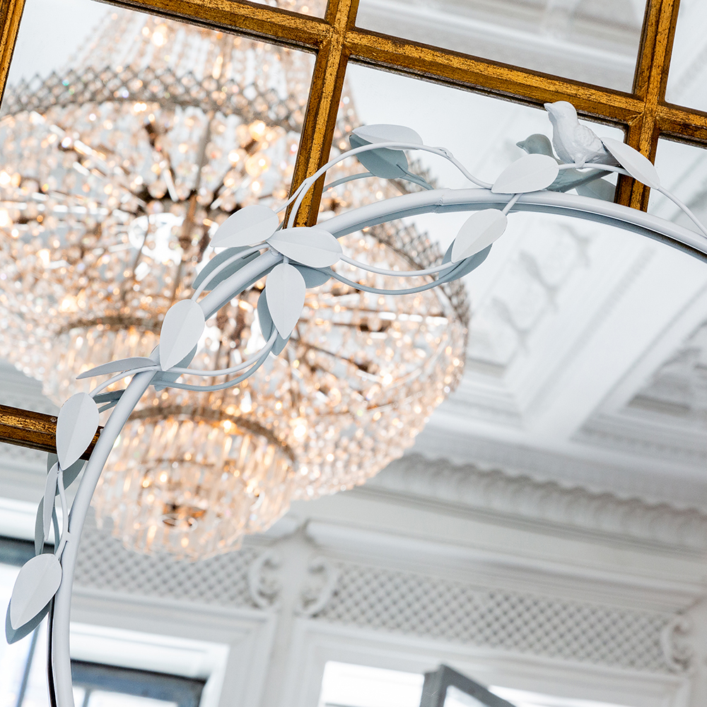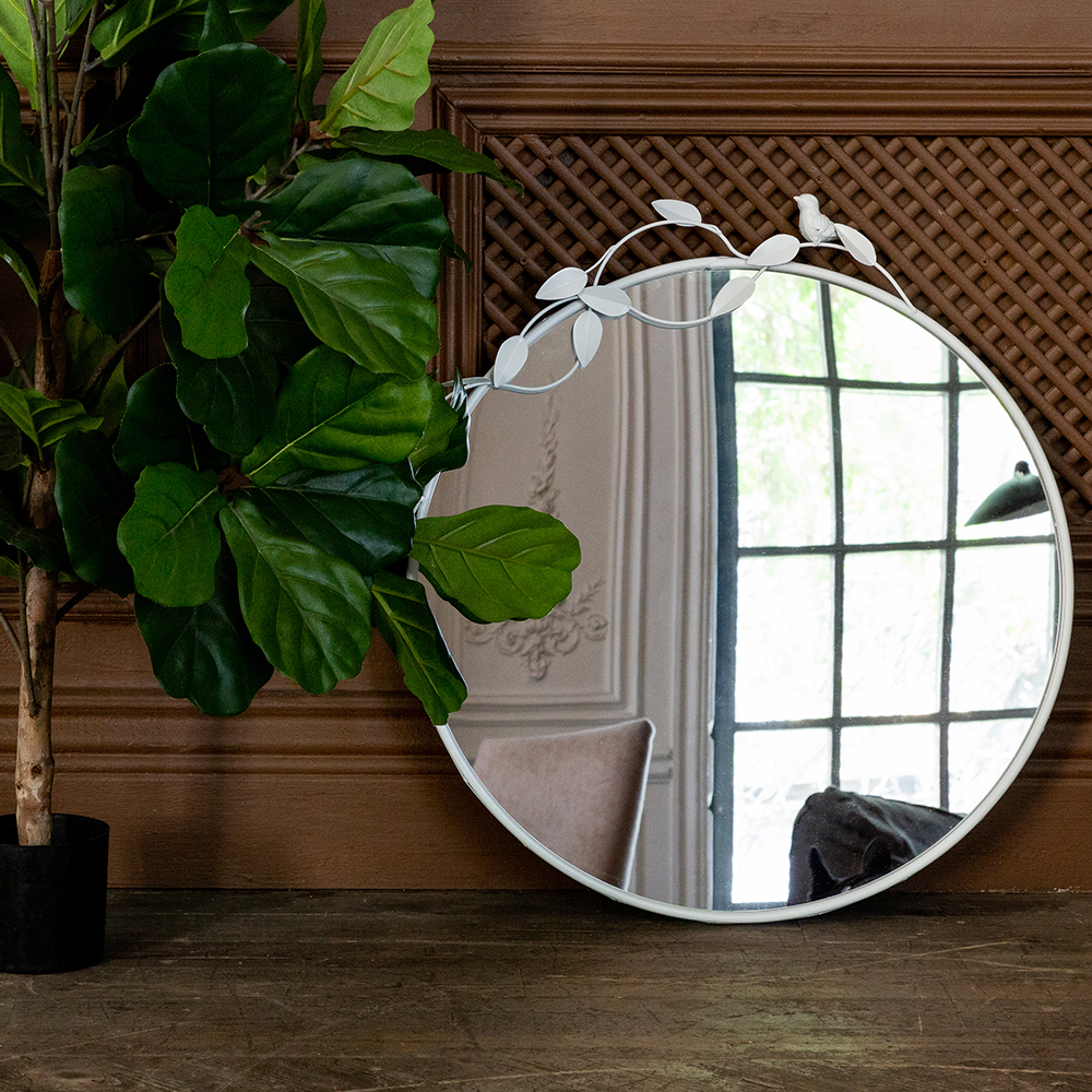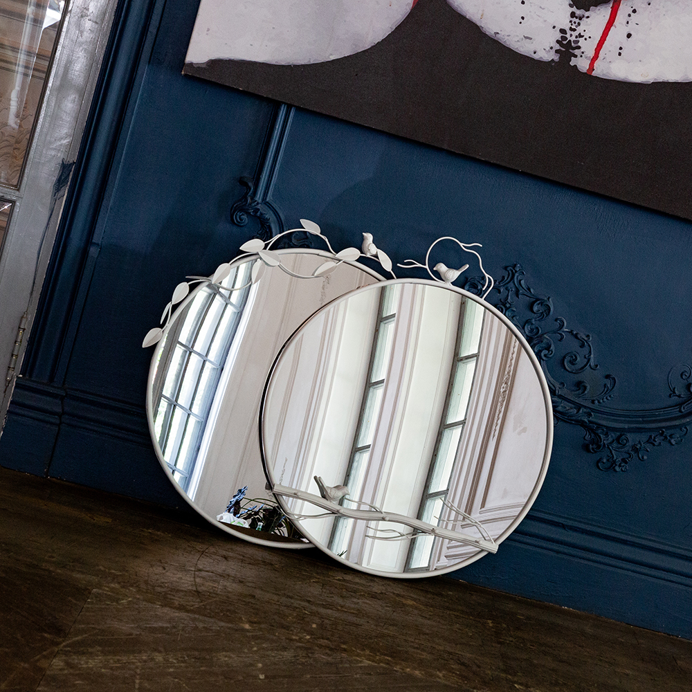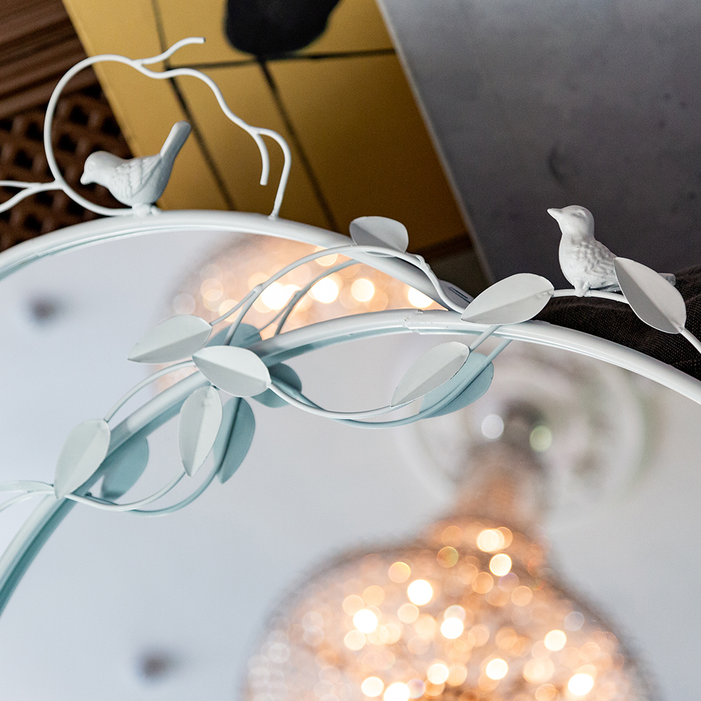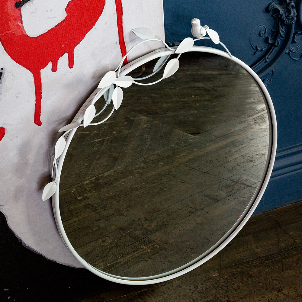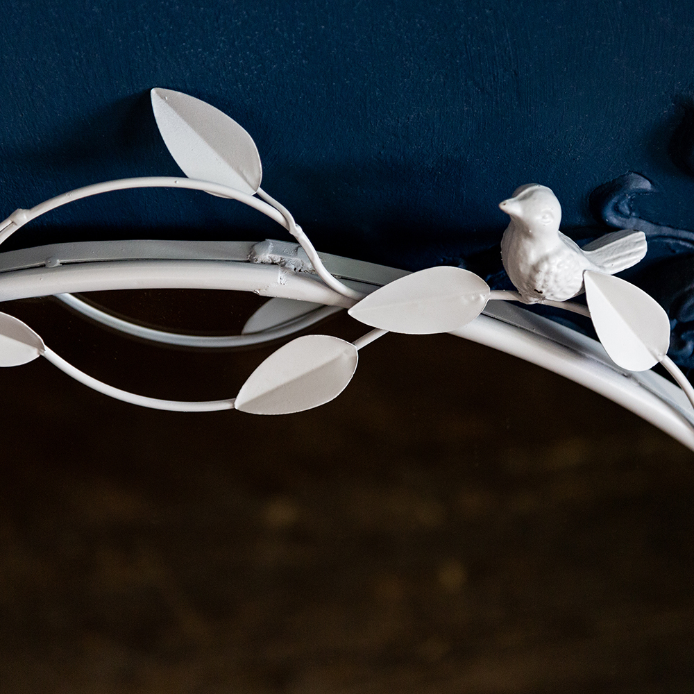 Зеркало Отей словно говорит, что некоторые предметы интерьера вполне могут стать заповедником ремесел и техник, энциклопедией искусства природы и даже песнью птиц. Тонкая и звонкая рама, белоснежное покрытие и кокетливая веточка с птицей – так выглядит идеальное зеркало от Объекта мечты. Зеркало Отей создано для того, чтобы стать не только ярким акцентом в интерьере, но и улучшить настроение. Зеркальное полотно покрыто серебряной амальгамой, что говорит о его долговечности. Металлическая рама прочная и долговечная.