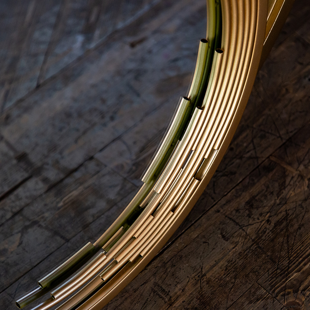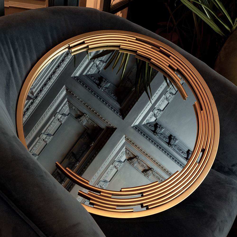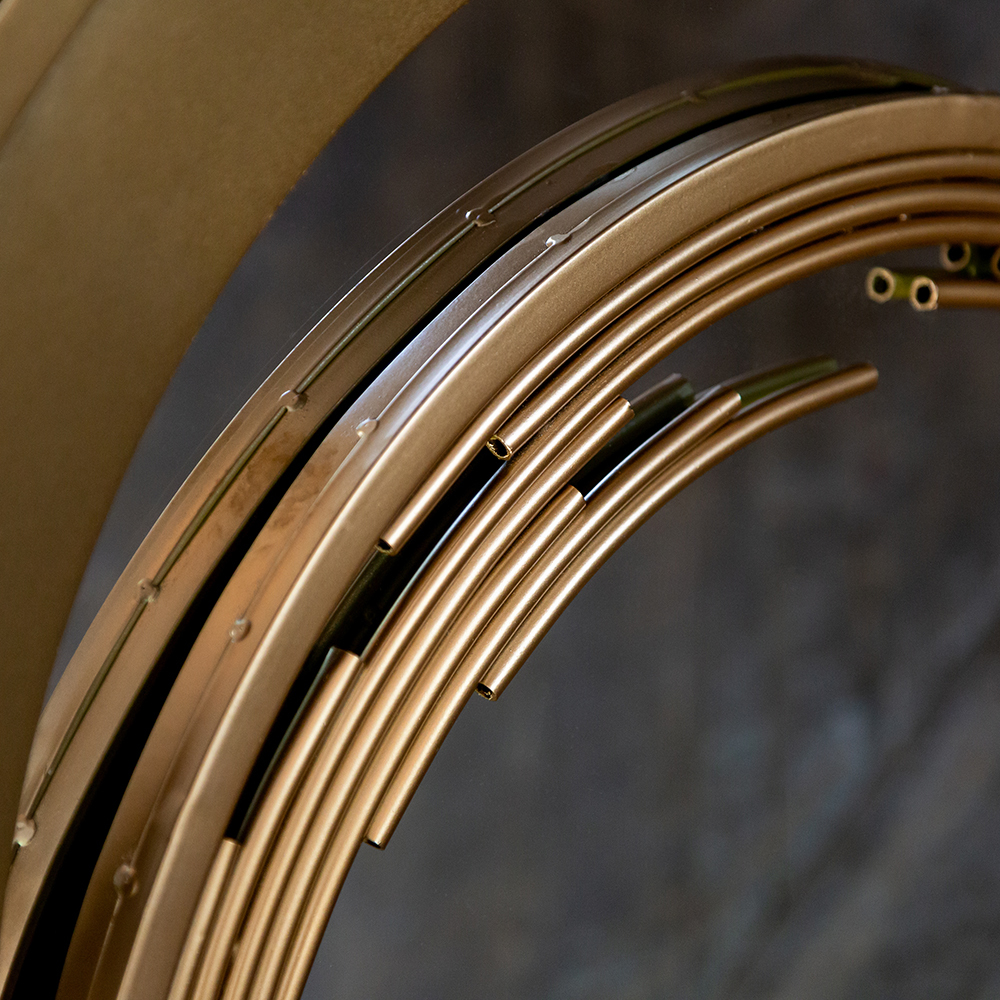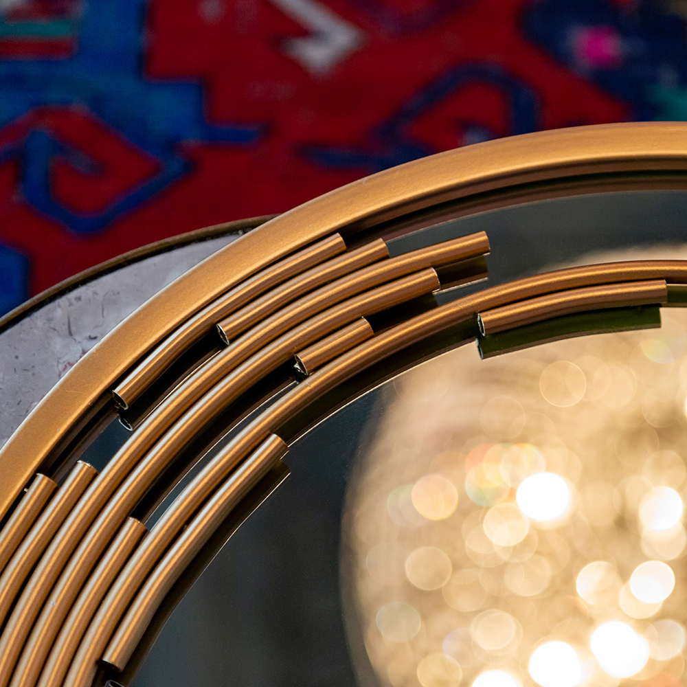 Зеркало Валлор - настоящее зеркало-легенда с новаторским дизайном и впечатляющей красотой своей формы. Это огонь и настоящие вспышки в интерьере! Лучи солнечного света украсили раму зеркала, создав иллюзию золотого пламени, ворвавшегося в ваш дом. Зеркало Валлор создано в честь знаменитых садов Валлор во Франции, расположенных в одноименном аббатстве, история которого известна с XI века. Залог успеха зеркала Валлор - чистота линий и мощная значимая составляющая: круг символизирует божественное начало, а тонкая игра металлических элементов, гарантирует визуальное удовольствие.