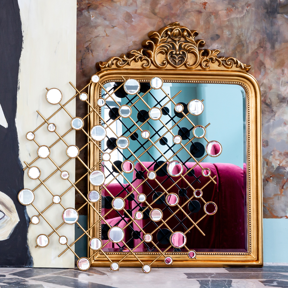 Быть или казаться? В случае с золотыми интерьерными предметами это не так уж и важно. По-настоящему сиять их заставляет не проба, а красивая хозяйка! Зеркало Говард короновано статным венцовым узором, возвышающим интерьер дворцовым величием английской классики. Кружевным зеркалам органично королевское золото, умиротворяющее теплым уютом и романтикой старины. Привкус роскоши подчеркивает широкая фацетная грань, задающая эффект оптической глубины и объема.