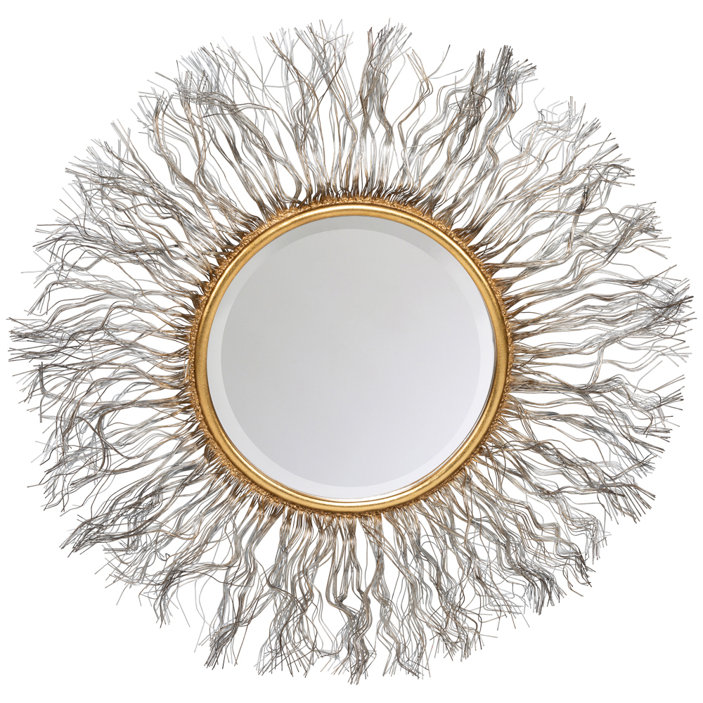 Дизайнерское зеркало «Калипсо» удивляет фантастической лучистой оправой, имитирующей то ли бахрому, то ли причудливое сплетение водорослей. Тонкая металлическая оправа, чутко реагирующая на свет, тонизирует интерьер гармоничными серебристыми отблесками, вторящими мерцанию грациозной фацетной окружности. Размер, дизайн и цвет зеркала «Калипсо» угождают гостиной и детской комнатам, холлу и кабинету, спальне и столовой.